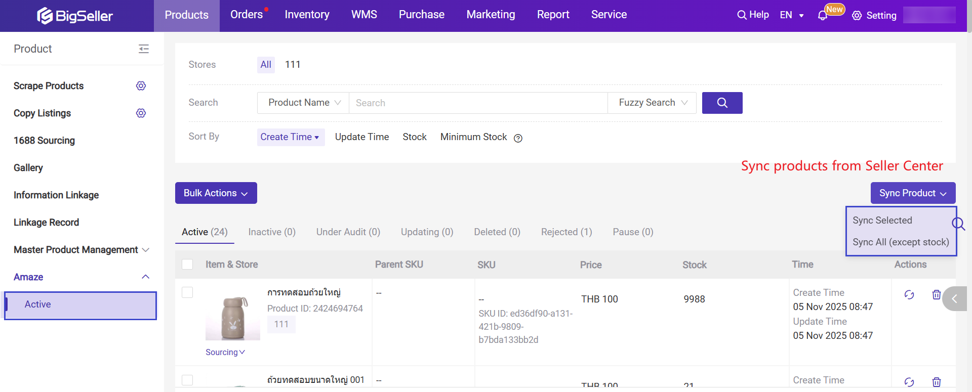 ⚠️ Important: If you delete a product in BigSeller, it will also be removed from your Amaze Seller Center. Please operate with caution.