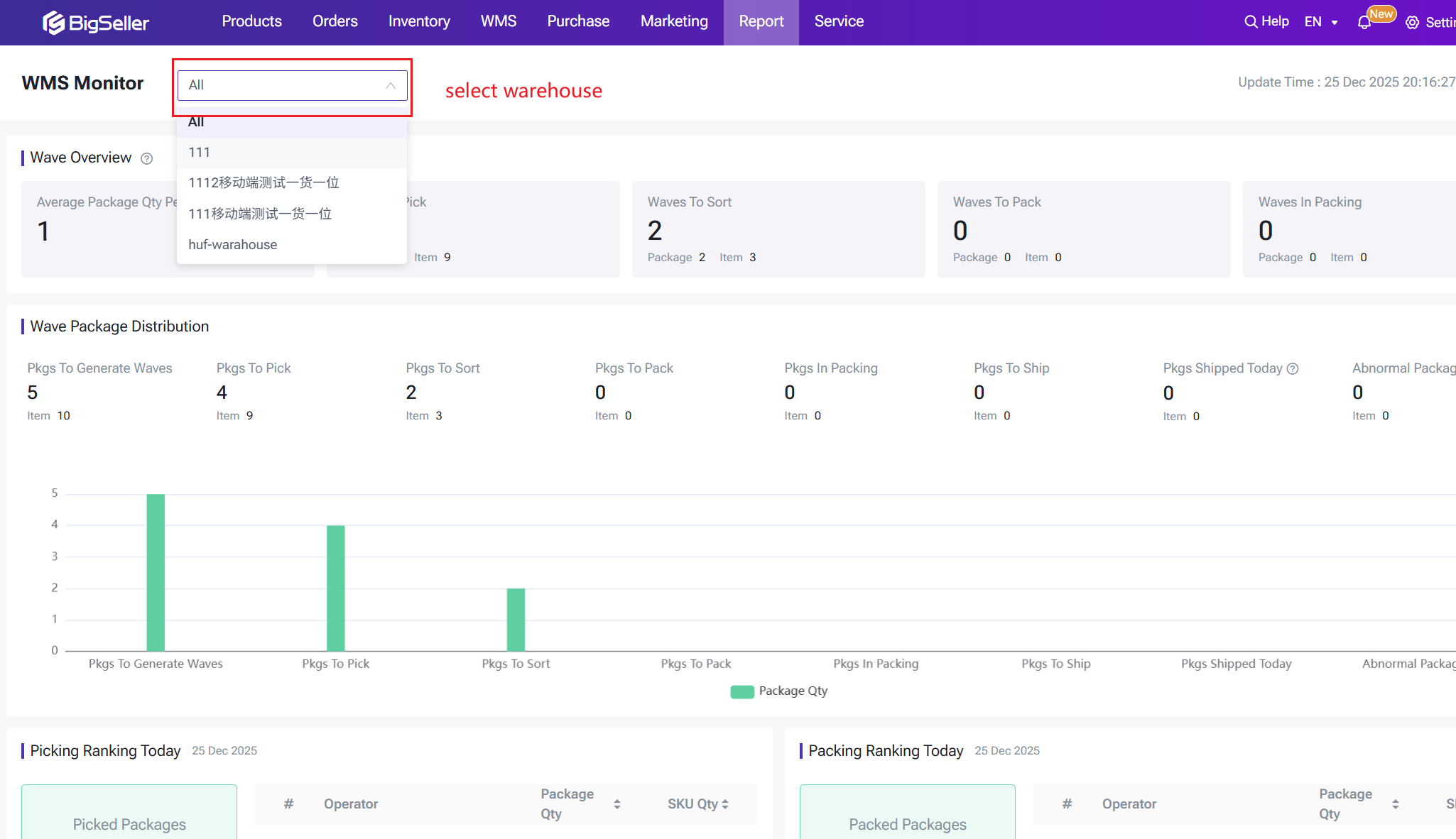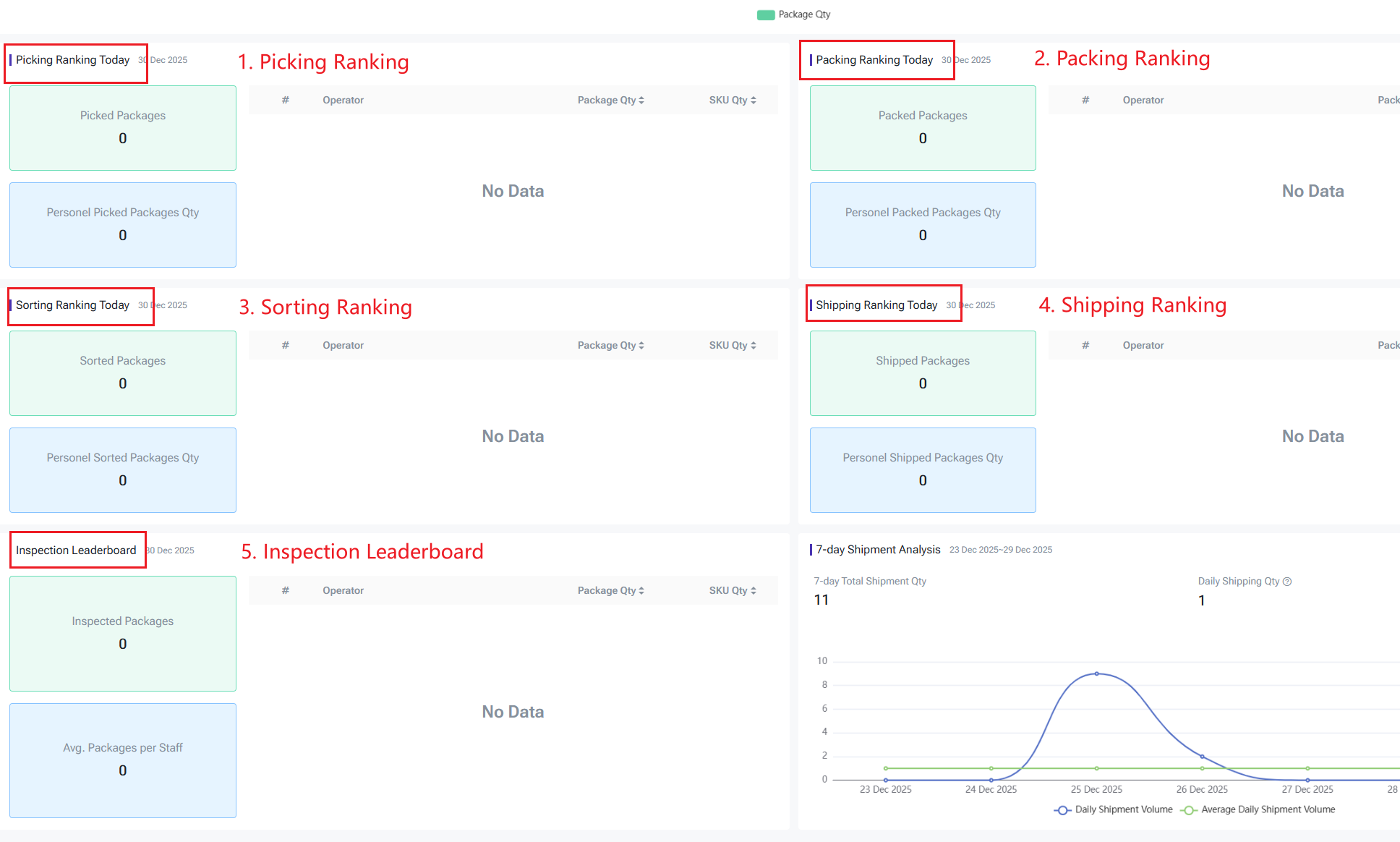 Count the number of packages processed and personnel performance in the daily wave process (performance will only be calculated after completing the wave task), and the ranking list supports custom sorting.