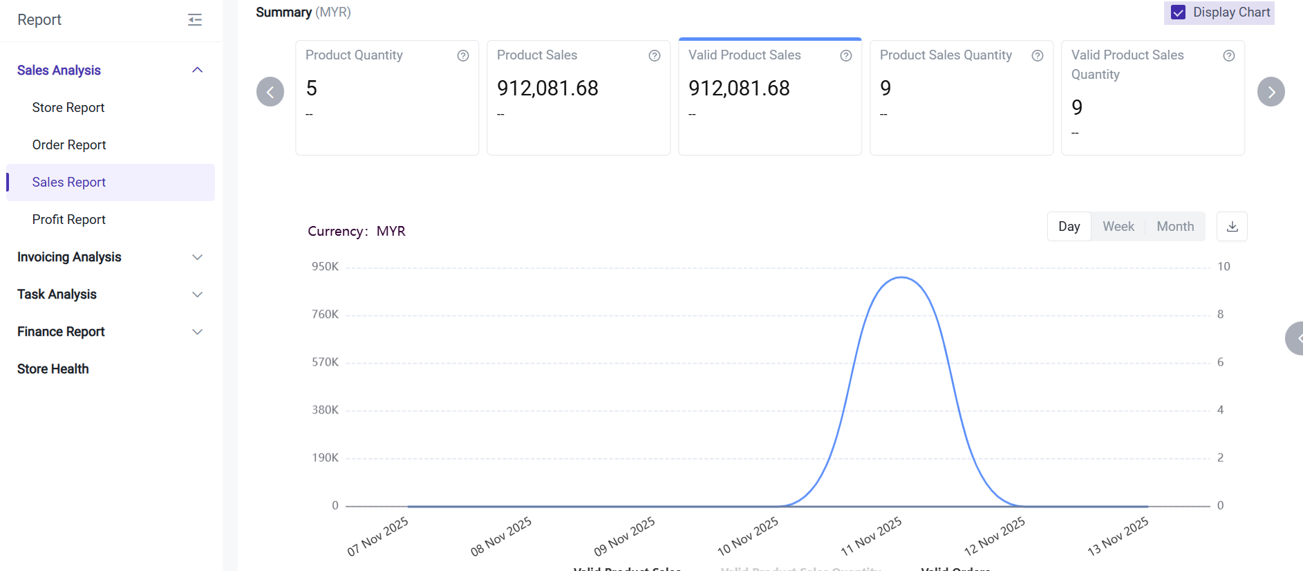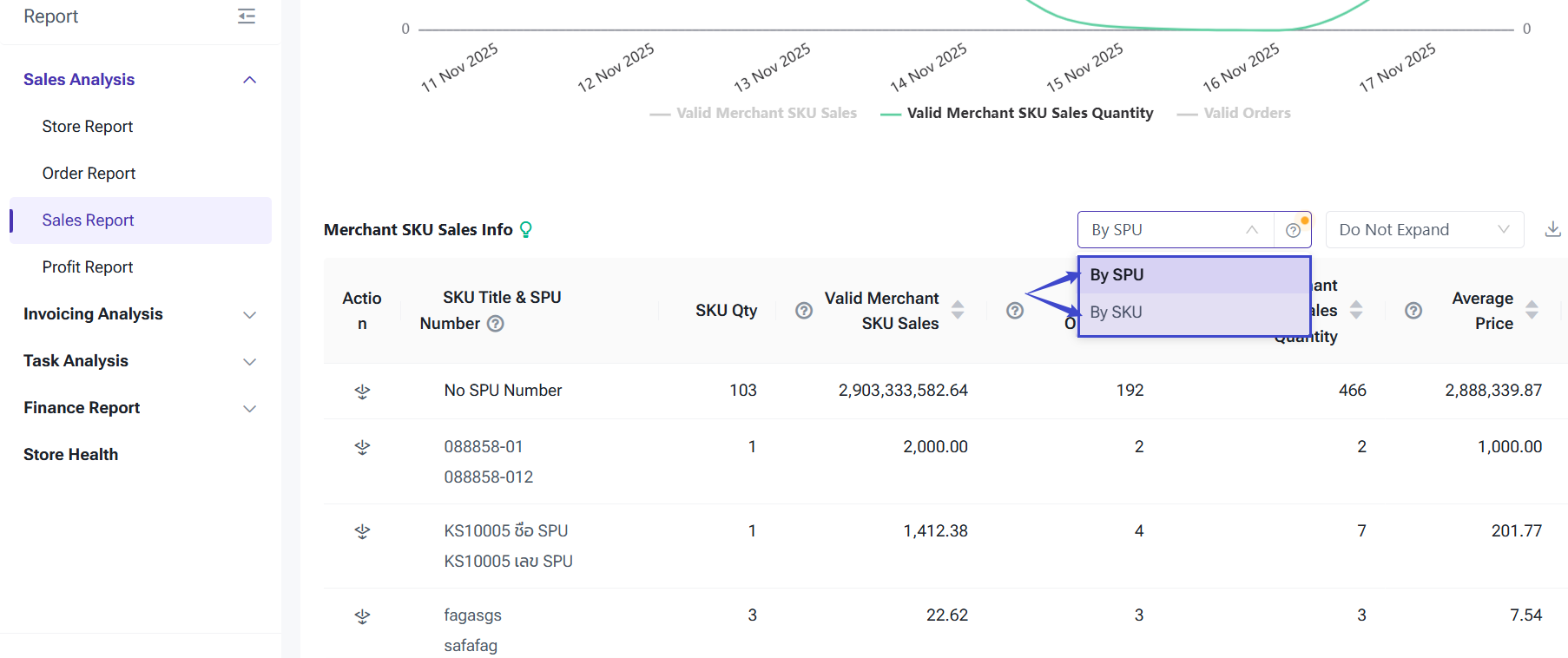 This makes it easier to view sales data for individual SKUs directly in the system, reducing manual calculation effort. You can also switch currencies when viewing the data, and export the report in the selected currency.