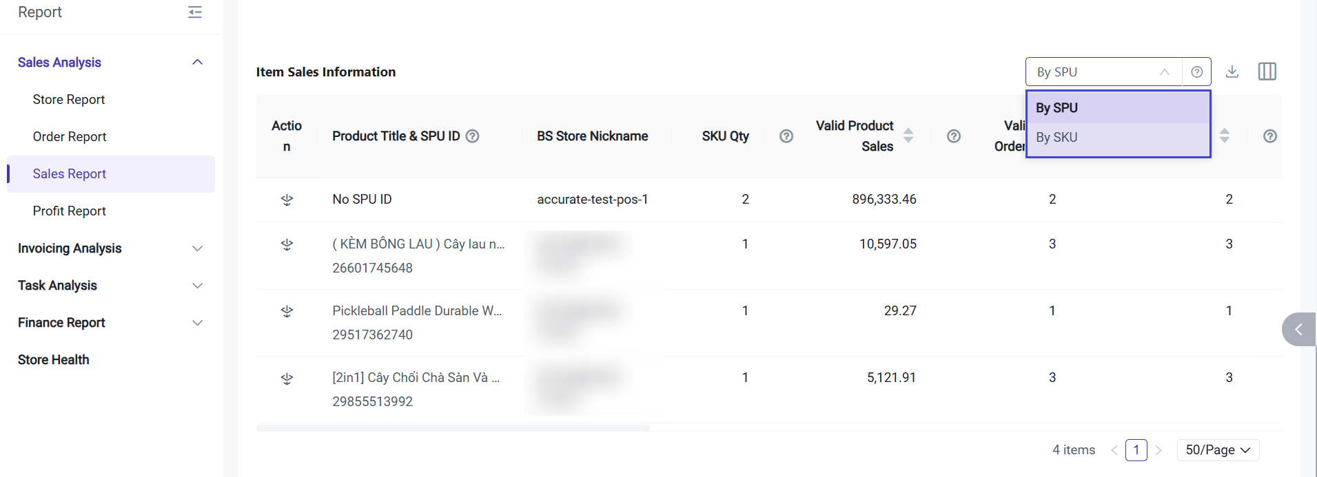 In Item Sales Information, you can choose to view sales details by SPU or by SKU.
