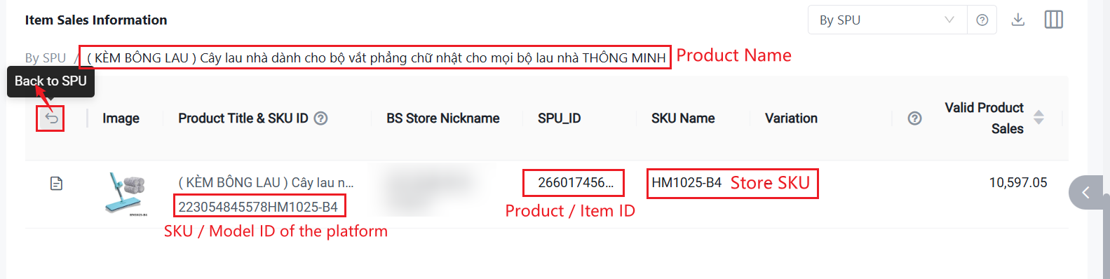 - SPU represents the BigSeller SPU-level dimension, where all variants of the same SPU are aggregated.