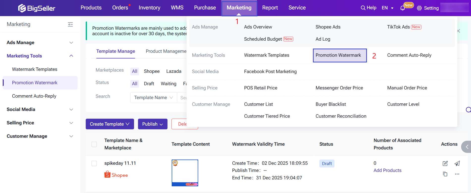 3) Promotion watermark only applies to the product's first image; If you fail to log in to your BigSeller account for more than 30 days, the original product images will not be restored and the scheduled publish will be cancelled.