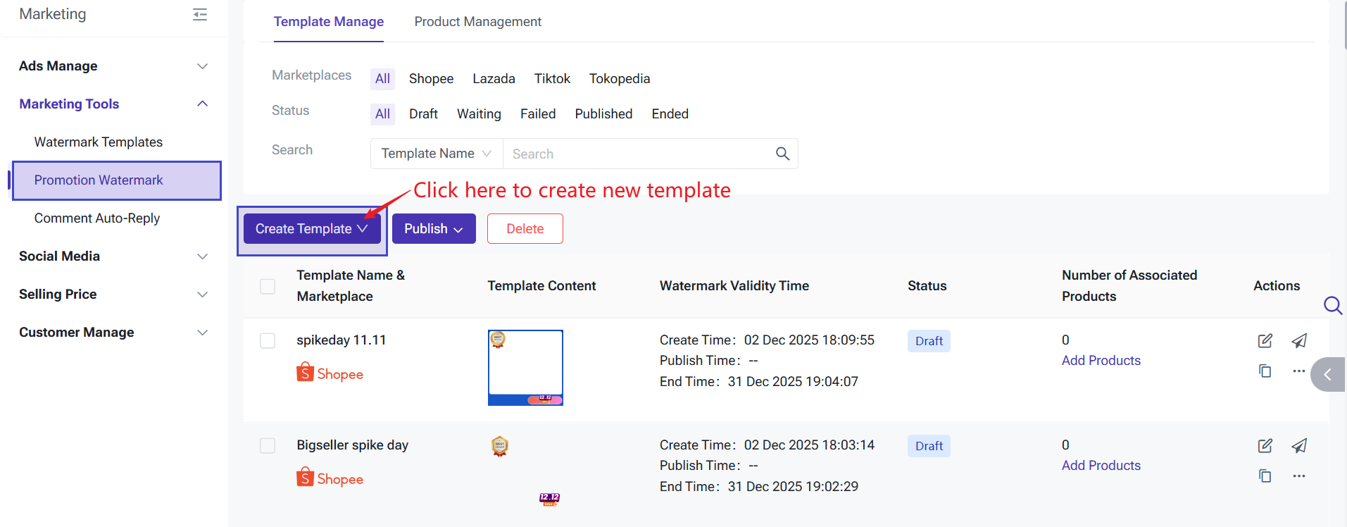 2. The template can be published only when the publish time is greater than the end time by 24 hours. Since it takes time to add watermarks, it’s recommended to publish the watermark in advance.
