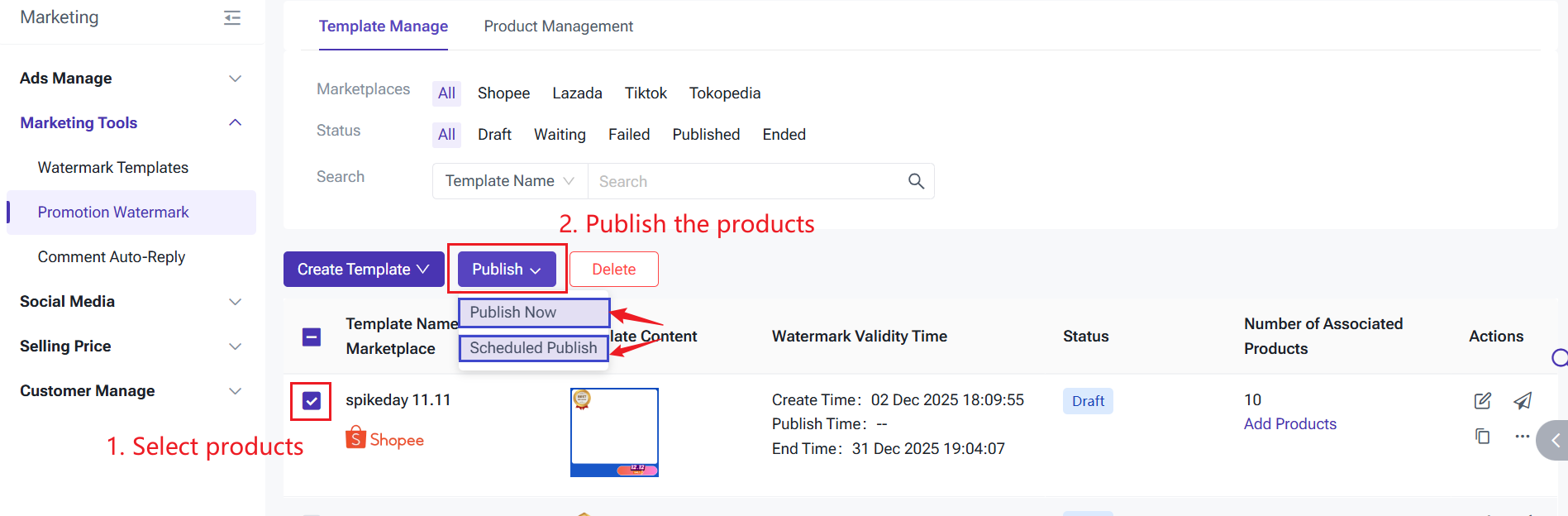💡Scheduled Publish: By scheduling ahead of time, you don't have to worry about forgetting to publish template at the right moment. It ensures that your promotion watermark goes live exactly when you want it, even if you're busy or unavailable.