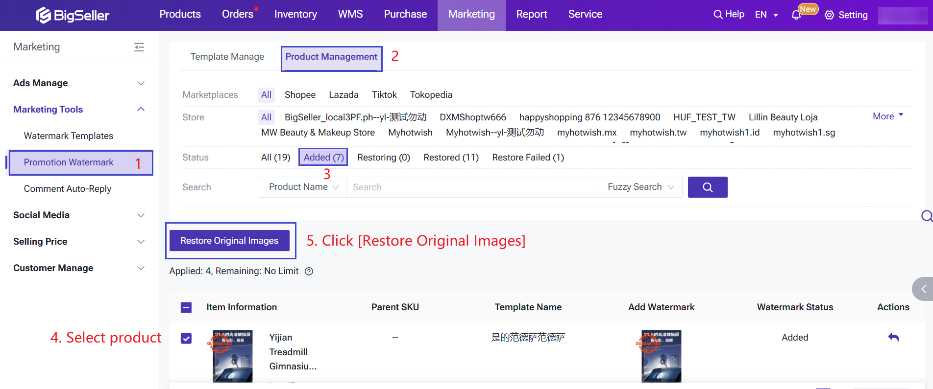 5. If you want to restore the original image before the end time, please go to Product Watermark to restore it.