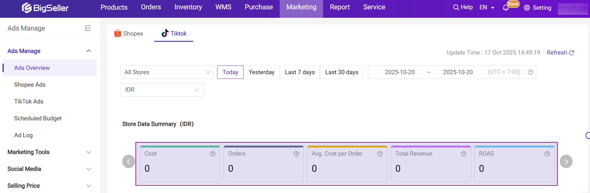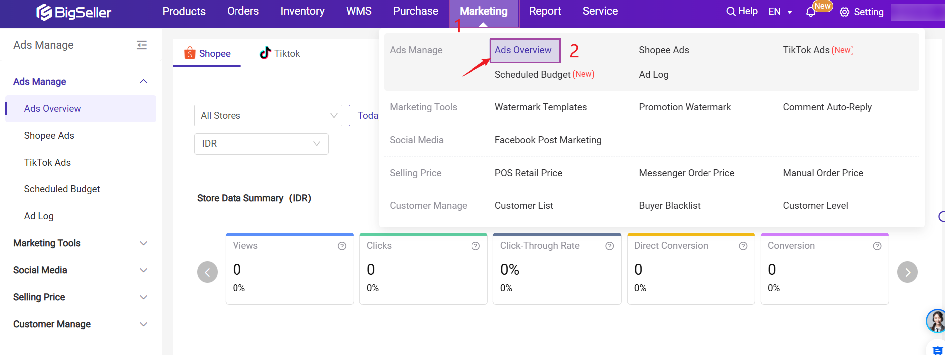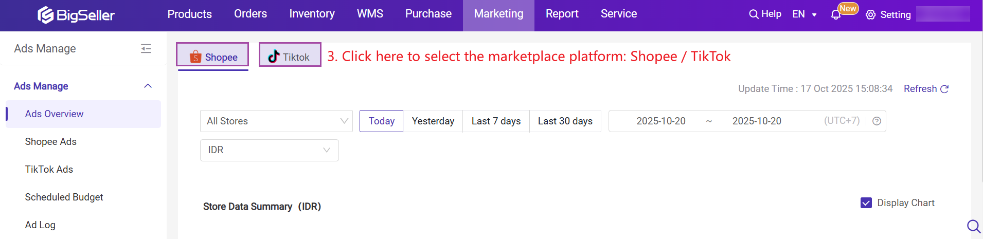 You must first connect your Shopee Ads or TikTok Ads permission to BigSeller.