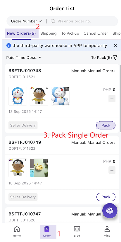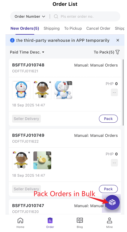 Q1: What if the bulk pack of orders fails?A1: If orders are packed failed, you can go to [Pack Failed] list to check the detailed reasons and pack again.