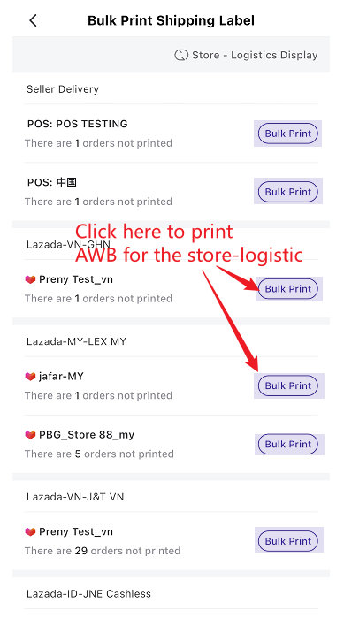 A2: On the bulk pack/print page, you can switch the display for "Store-Logistics" or "Logistics-Store".
