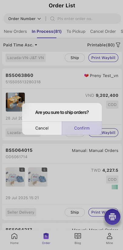 On BigSeller APP, you can receive new order notifications anytime and anywhere, pack orders, print shipping labels, and ship the orders.