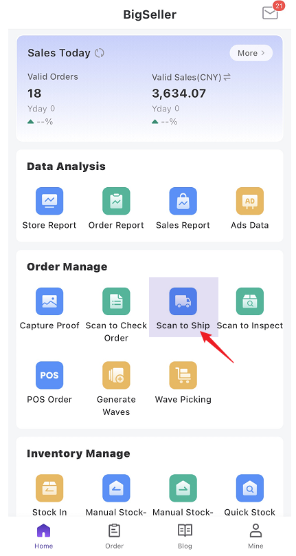 (Click here to learn more 👉How to use the scan to ship function in BigSeller APP?)