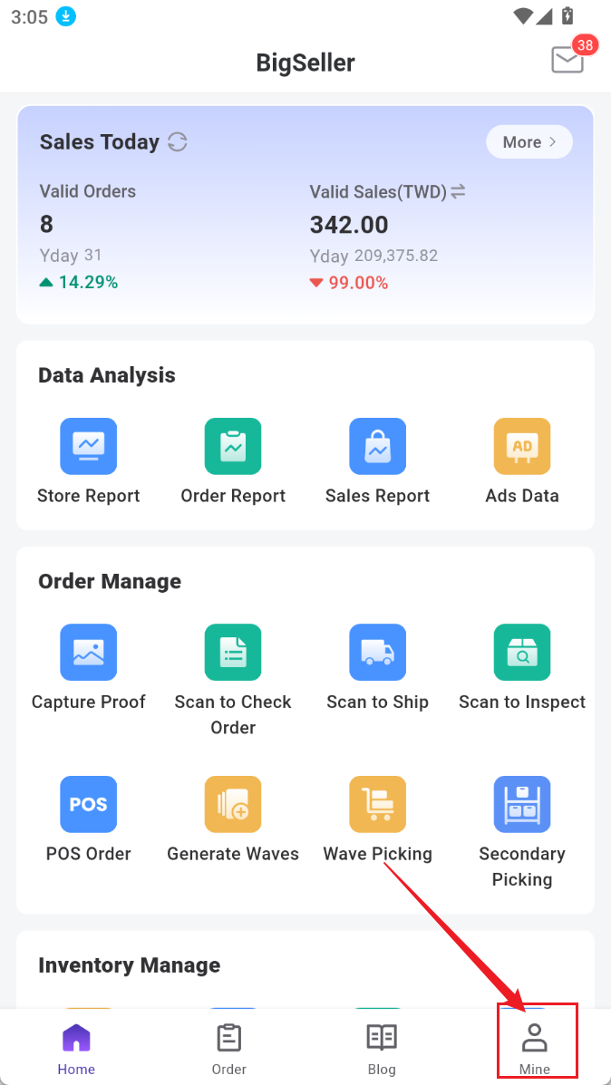 Switch Account: BigSeller App allows users to login with different accounts.