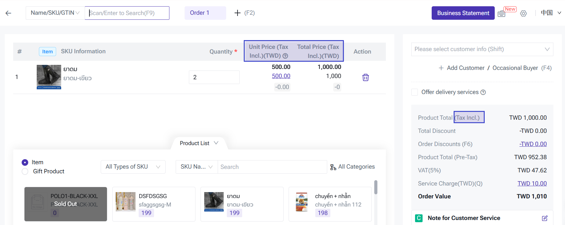 5)Select Out-of-Stock Items: To select out-of-stock items when creating POS retail orders, go to [Order Settings > POS Retail Settings].