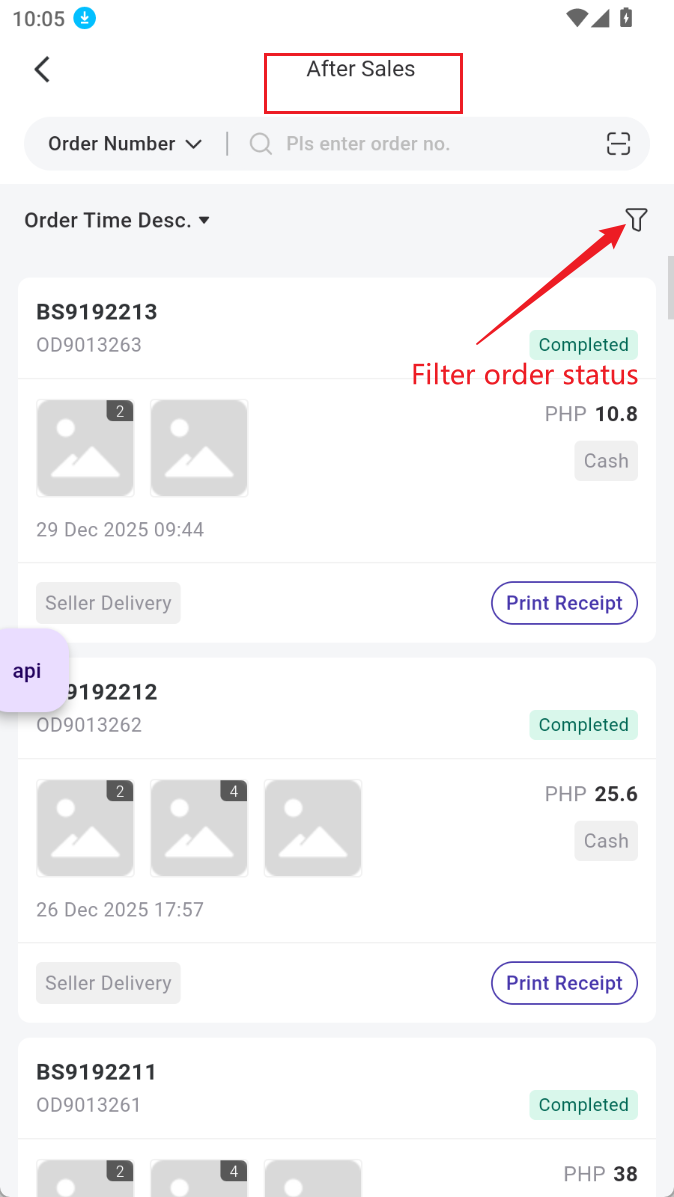 Click the order list, After-Sales is displayed at this page.