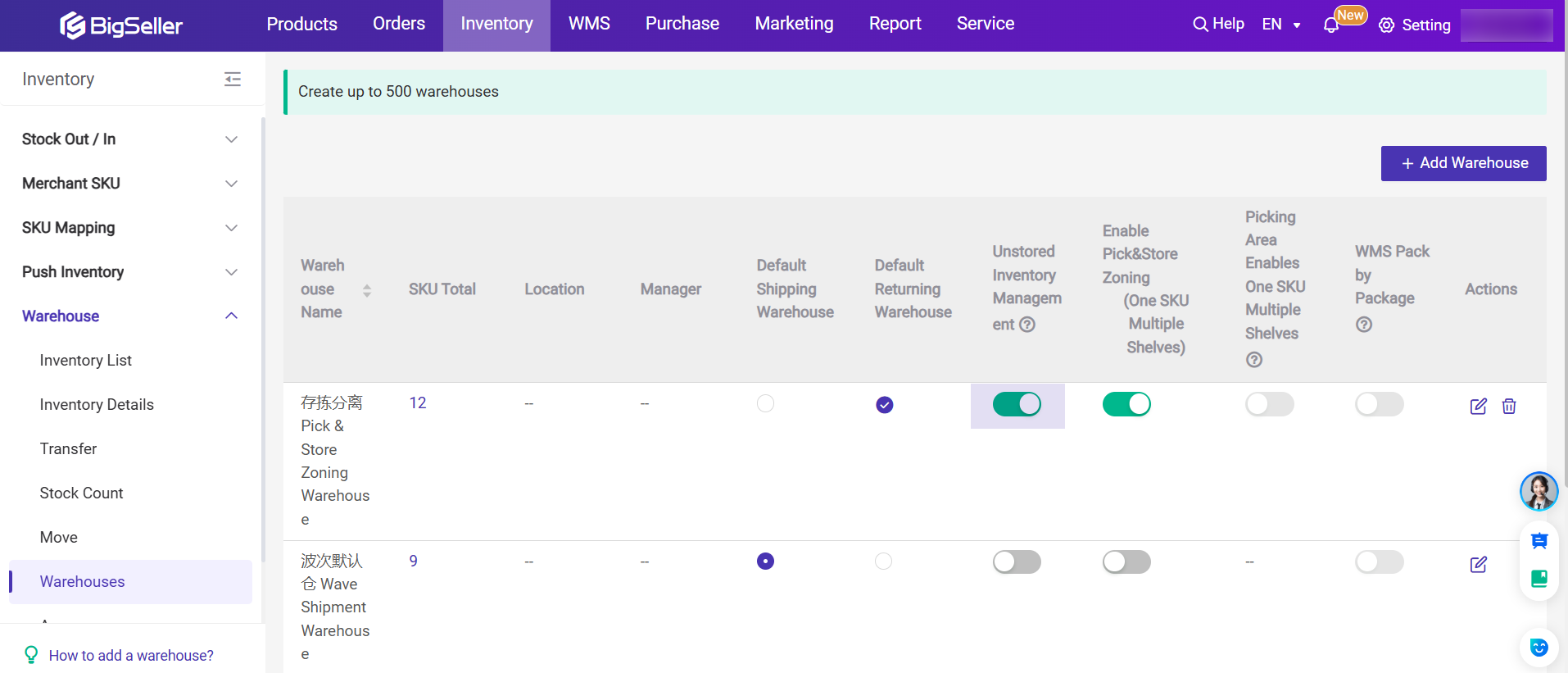 If you have already enabled Pick&Store Zoning feature, BigSeller will automatically enable unstored inventory management.