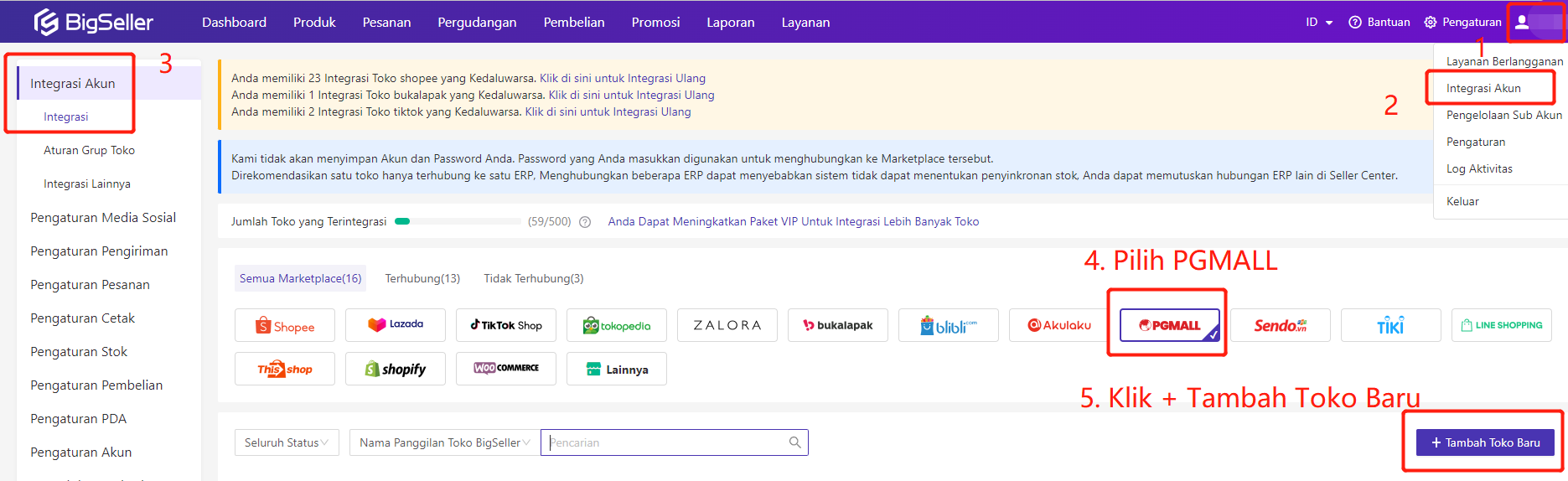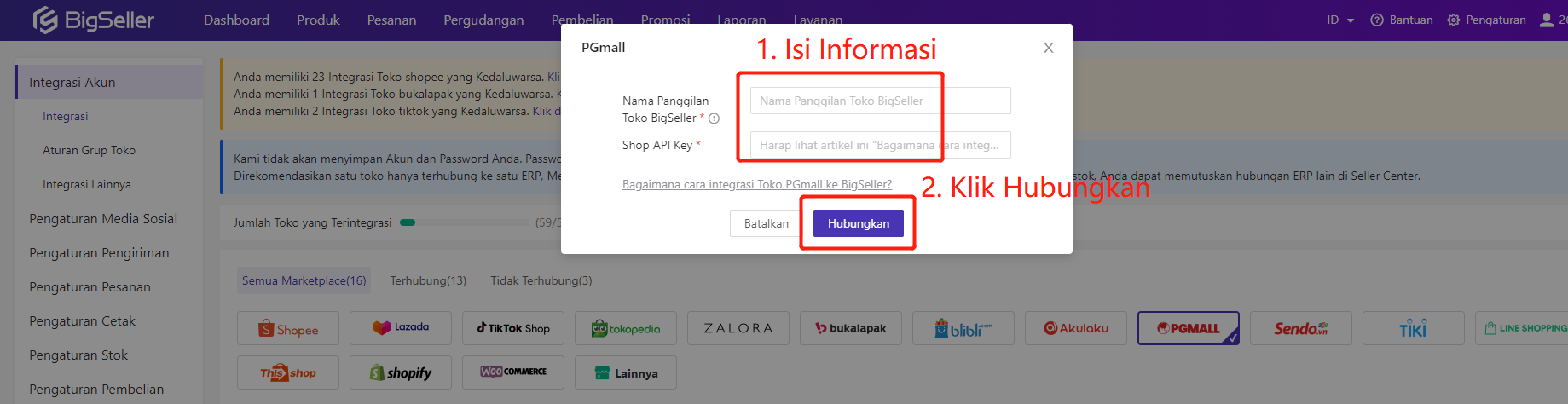 Cara Integrasi Toko PGMALL dengan BigSeller