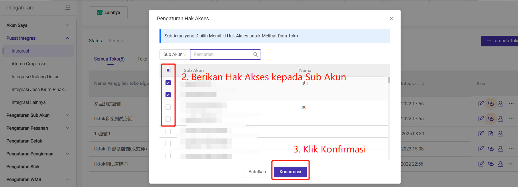 Secara default, sub akun tidak memiliki hak akses untuk toko baru. Untuk melihat toko semi manajemen, sub akun perlu diberikan hak akses.