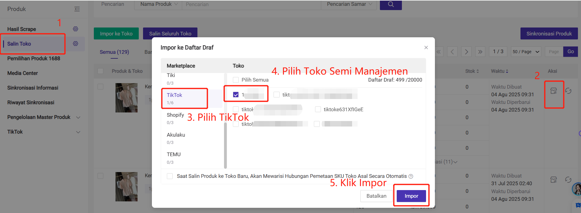 Salin produk yang berasal dari toko semi manajemen TikTok dan impor ke toko semi manajemen TikTok