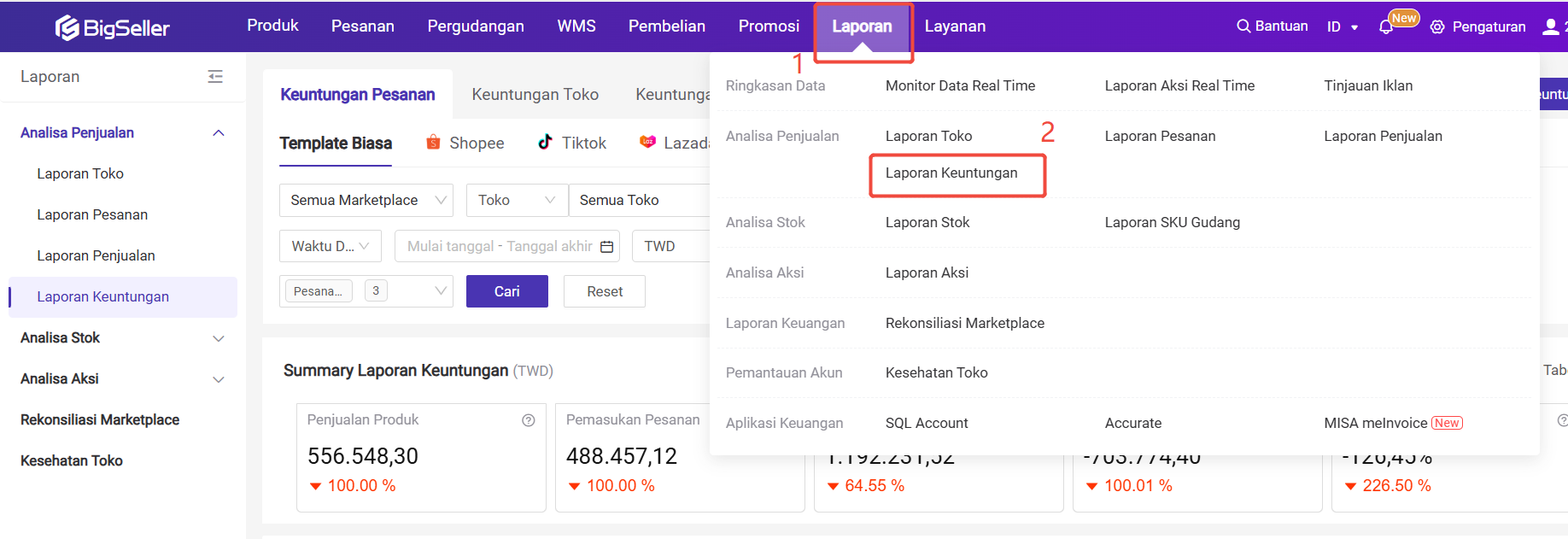 Langkah Pertama, Masuk ke Halaman Laporan Keuntungan