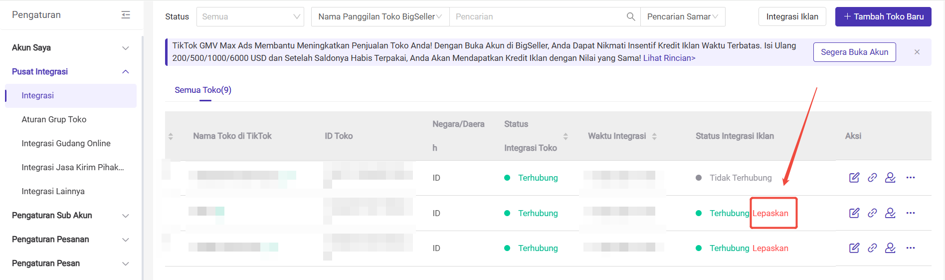 Q1: Apakah bisa lepaskan integrasi iklan TikTok dari akun BigSeller saya?