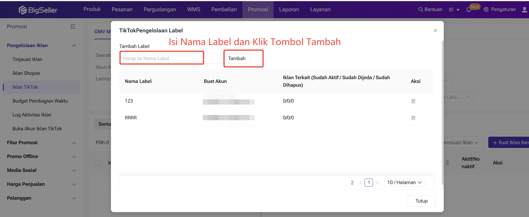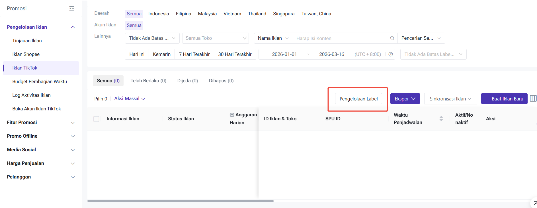 Selain itu, Anda juga dapat mengelola label untuk iklan terkait, itu dapat memudahkan untuk mencari iklan nya berdasarkan label terkait.