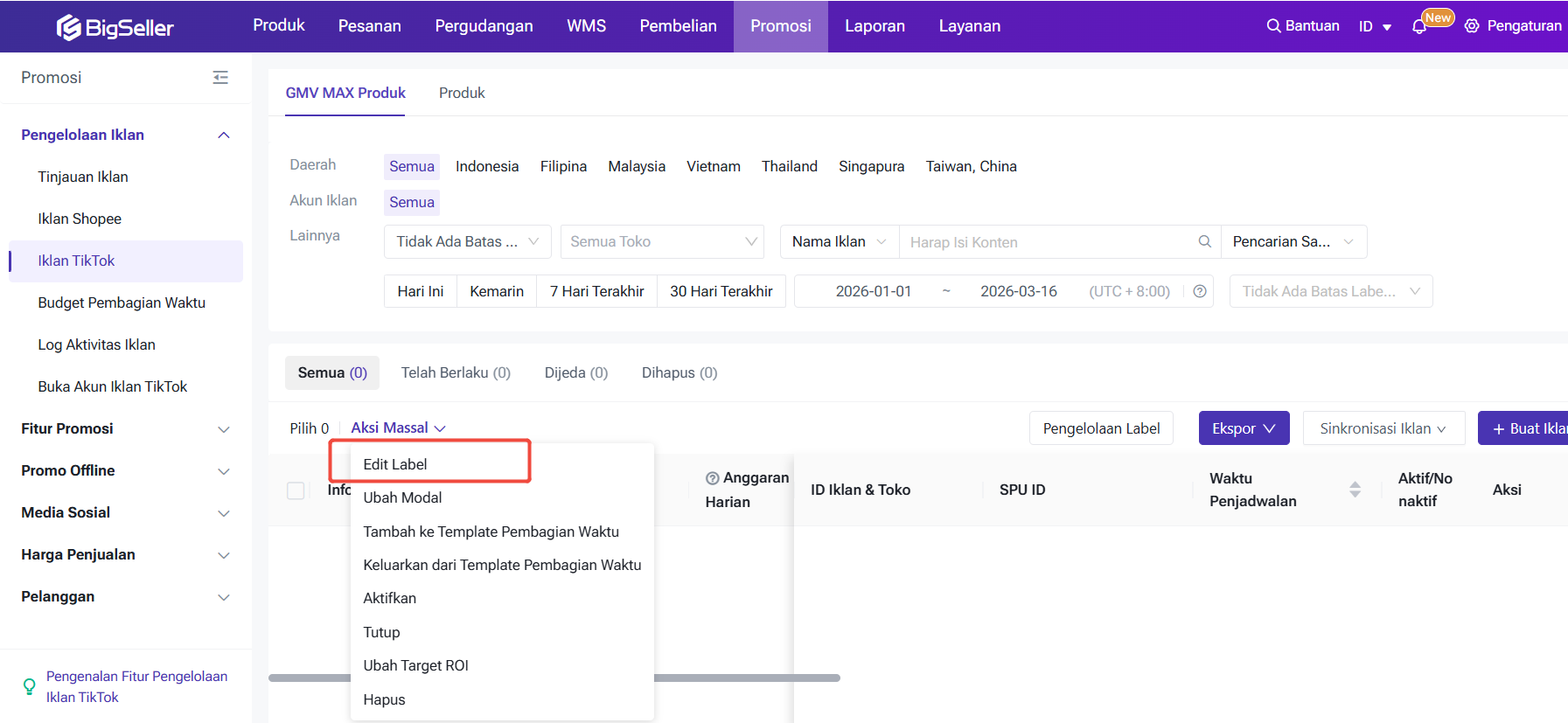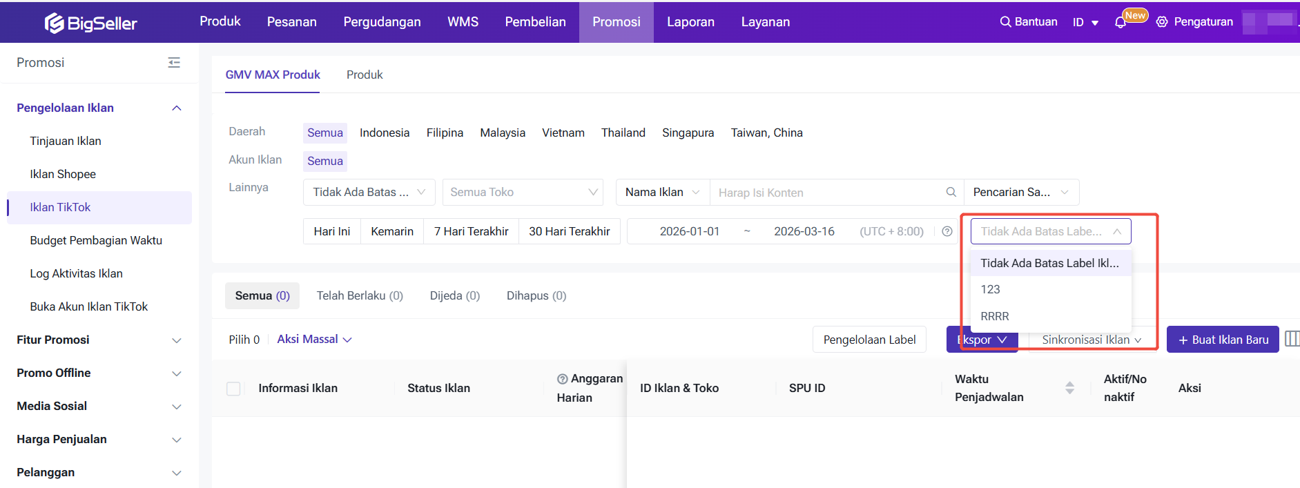 Sedangkan GMV Max adalah alat manajemen iklan inovatif berbasis AI. Alat ini dirancang khusus untuk promosi produk dan sesi belanja langsung di marketplace TikTok. Sekarang, BigSeller mendukung pembuatan iklan TikTok GMV Max, yang memungkinkan sistem untuk mengelola penerbitan dan penempatan iklan, sehingga meningkatkan konversi penjualan produk.