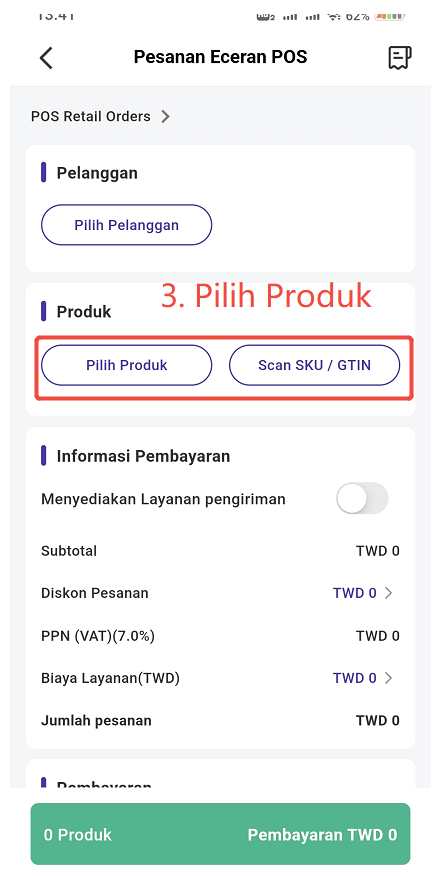 Langkah Ketiga, Membuat Pesanan Eceran POS