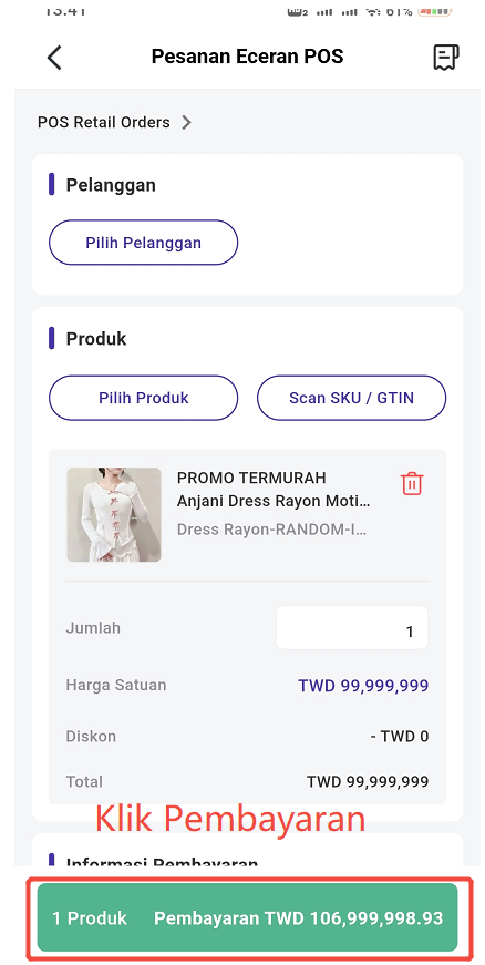 Setelah selesai isi informasi yang diinginkan, akhirnya klik "Pembayaran". Sistem akan otomatis menjalankan aksi berdasarkan pengaturan pencetakan dipilih.
