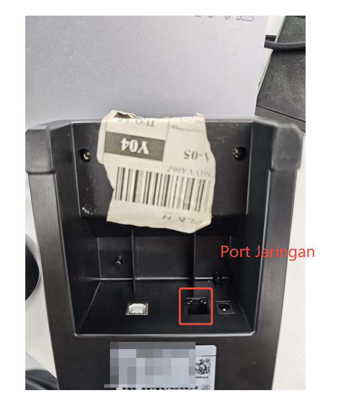 Laci kasir terhubung ke printer struk Bluetooth atau printer kabel melalui port jaringan (LAN), dan printer terhubung ke mesin kasir ritel.