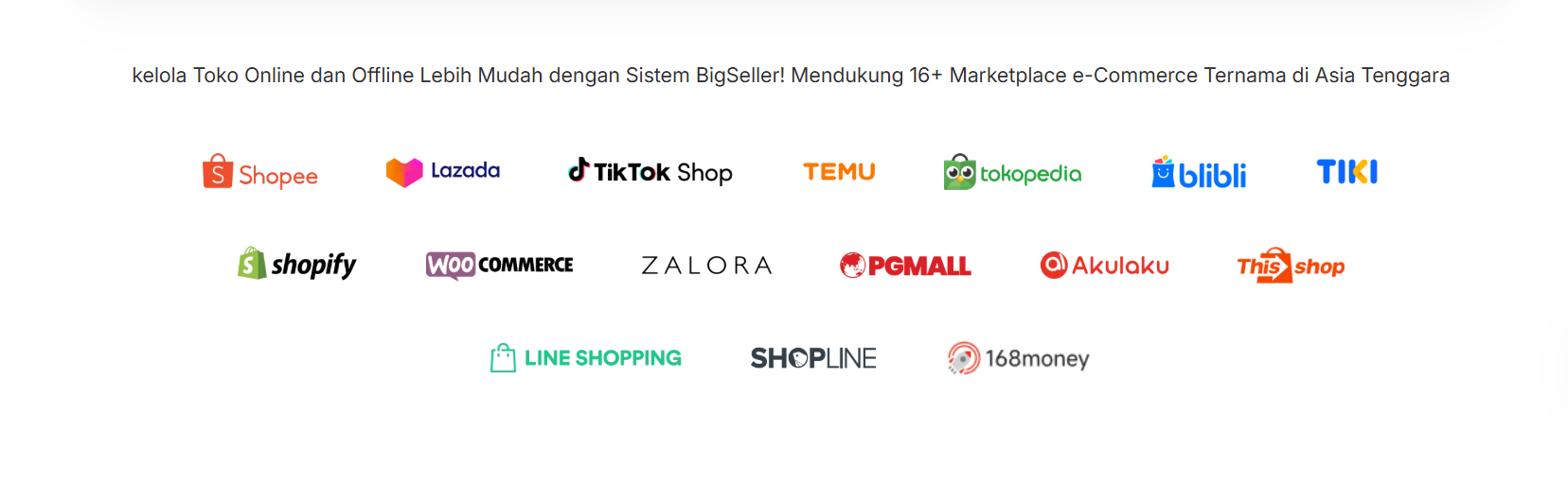 Anda bisa integrasi toko ke sistem BigSeller, sekarang udah mendukung Marketplace Shopee, Lazada, Tokopedia, Blibli, Shopify, Woocommer, Tiktok diintegrasikan ke Sistem Bigseller.