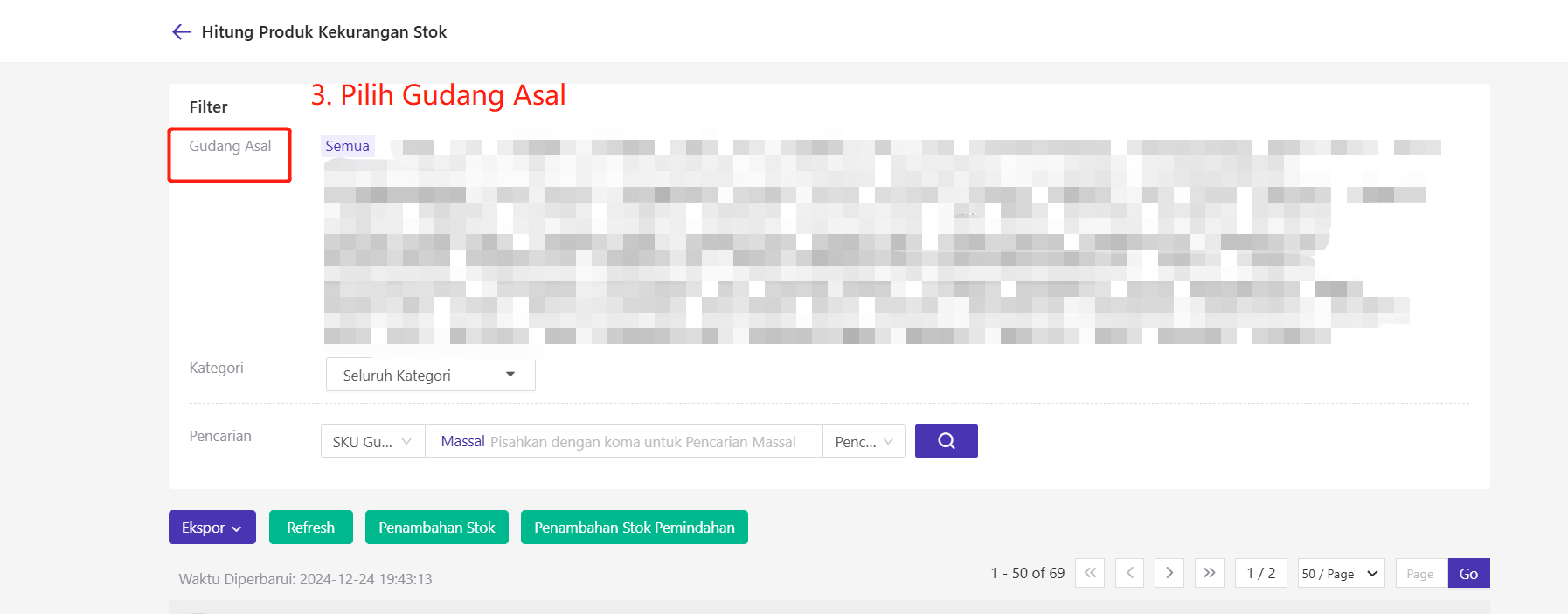 ② Menambahkan stok melalui Fitur Penambahan Stok Pemindahan di status Hitung Produk Kekurangan Stok