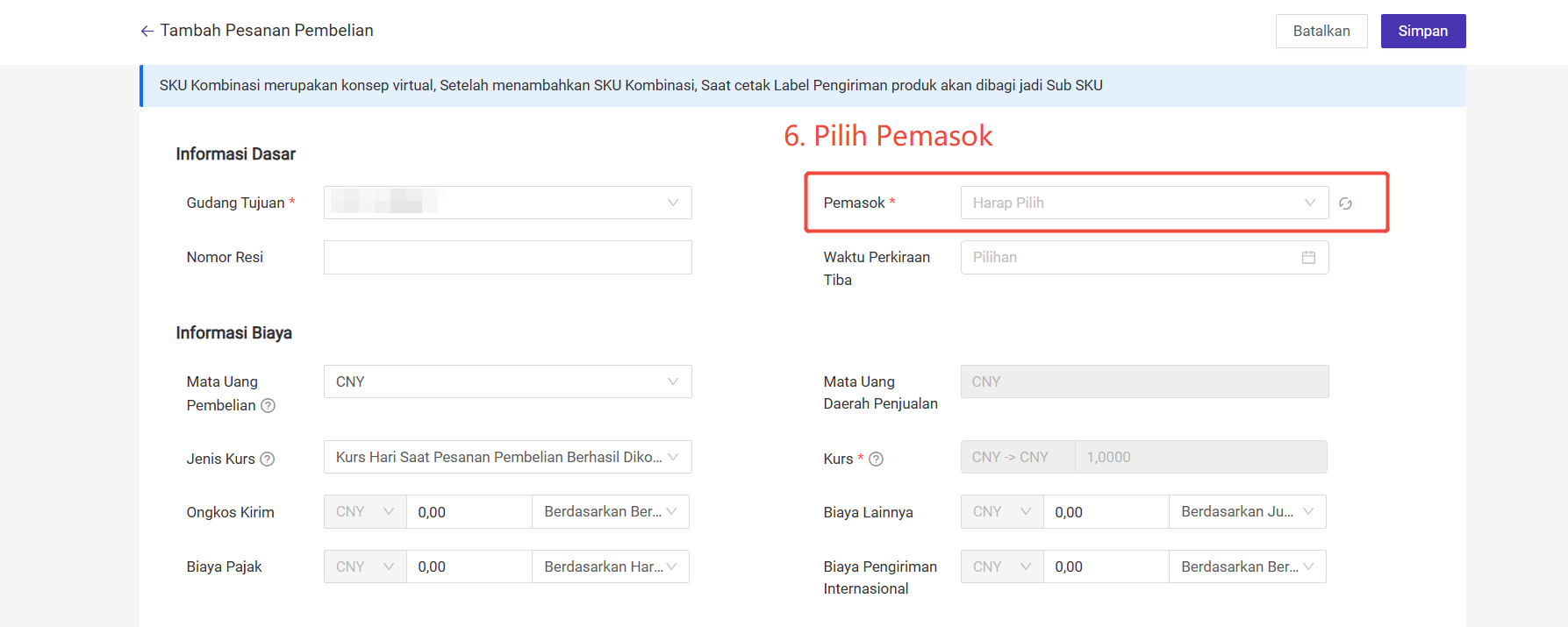 (2) Anda juga bisa mengubah SKU Gudang ke Gudang Asli Lain yang ada di rincian pesanan tersebut secara langsung.