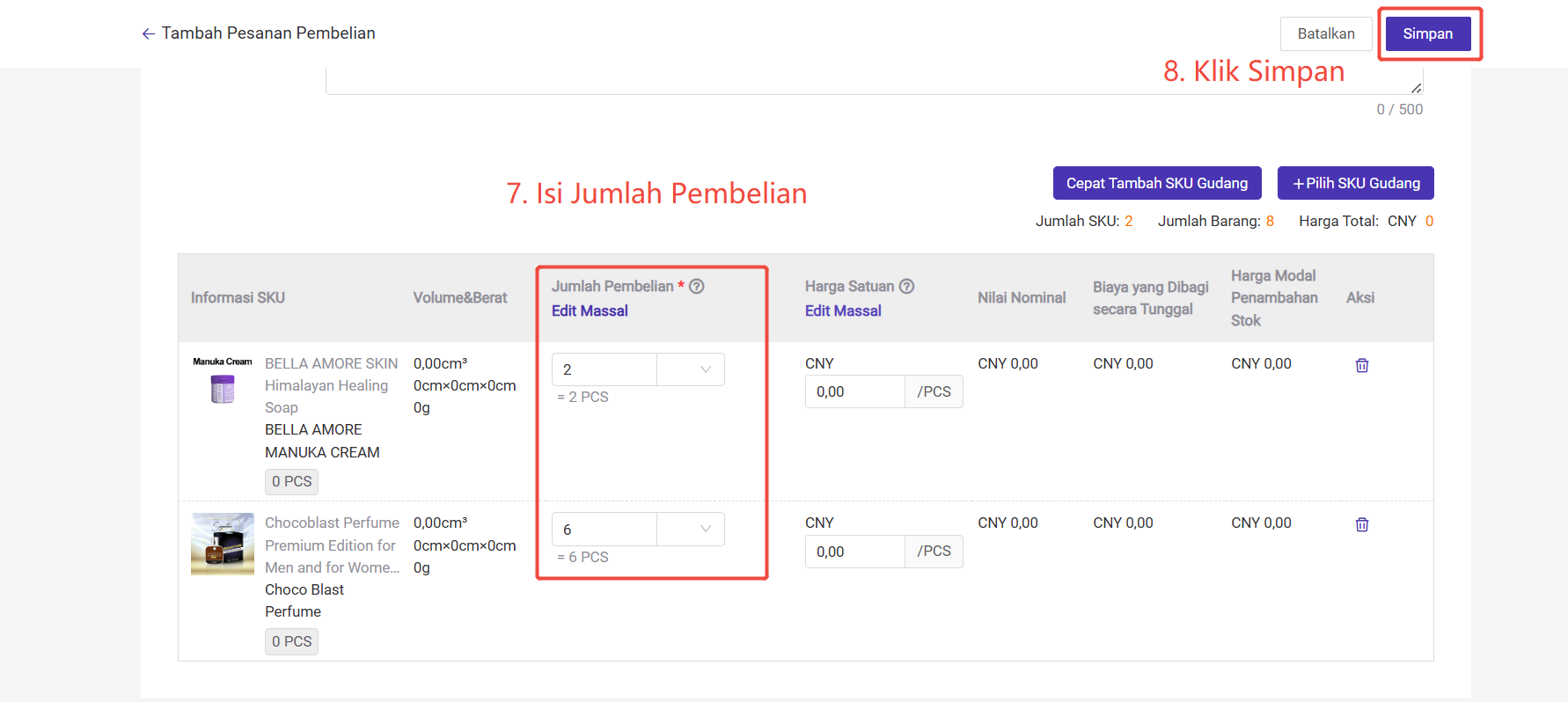 Masukkan SKU Gudang tersebut ke Gudang yang tertera di Penambahan Stok