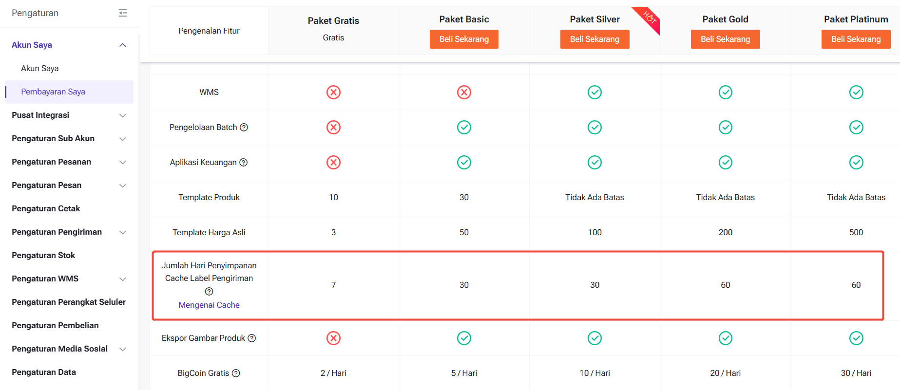 Jumlah hari cache dihitung dari saat pesanan diproses, Ada kecil kemungkinan cache label pengiriman akan gagal disimpan diakibatkan oleh sambungan API ( Hanya mendukung Shopee, Lazada, Blibli, Tiktok, Tokopedia,Akulaku). Untuk pengguna versi gratis beralih ke versi berbayar, atau dari versi berbayar beralih ke versi gratis, tidak akan mempengaruhi jumlah hari penyimpanan cache label pengiriman.
