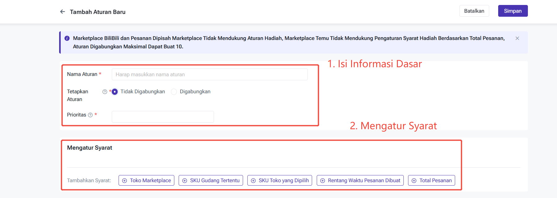 ① Nama Aturan: Dapat isi nama aturan berdasarkan kebutuhan Anda