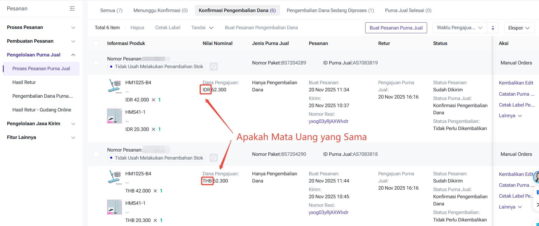 Konfirmasi Pengembalian Dana: Setelah konfirmasi pengembalian dana, pesanan nya akan dimasukkan kek status Purna Jual Selesai