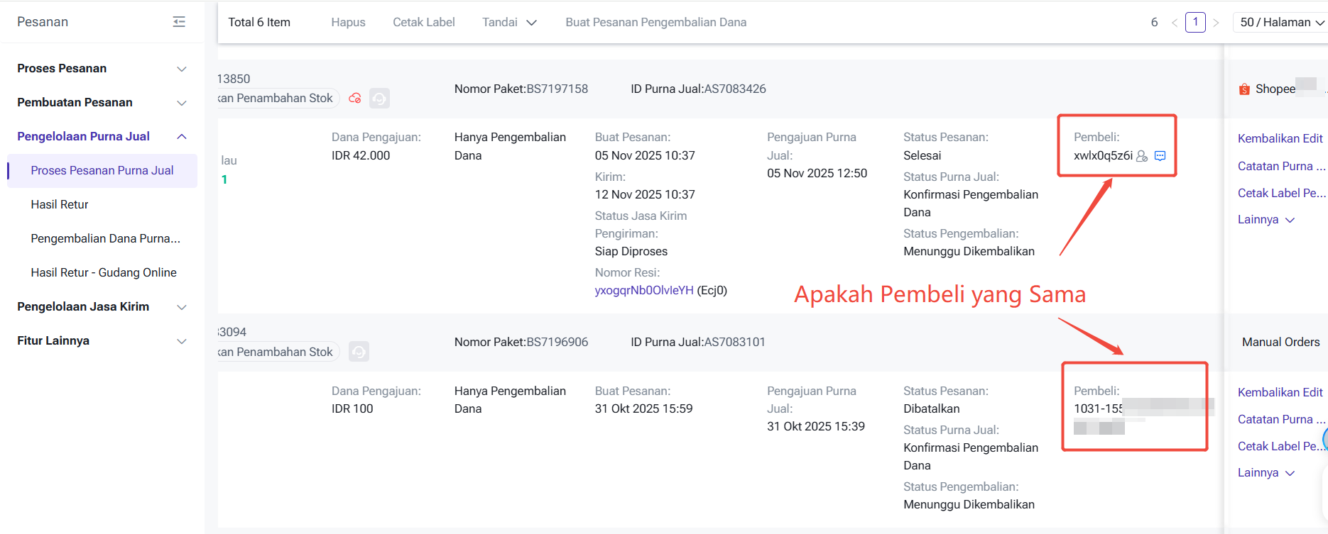 Pesanan Shopee dengan pengiriman gagal: Pesanan sudah selesai, dan pembeli mengajukan permintaan hanya pengembalian dana. Karena sistem tidak dapat melakukan retur gudang otomatis, Anda dapat menyelesaikannya secara manual melalui formulir after-sales.