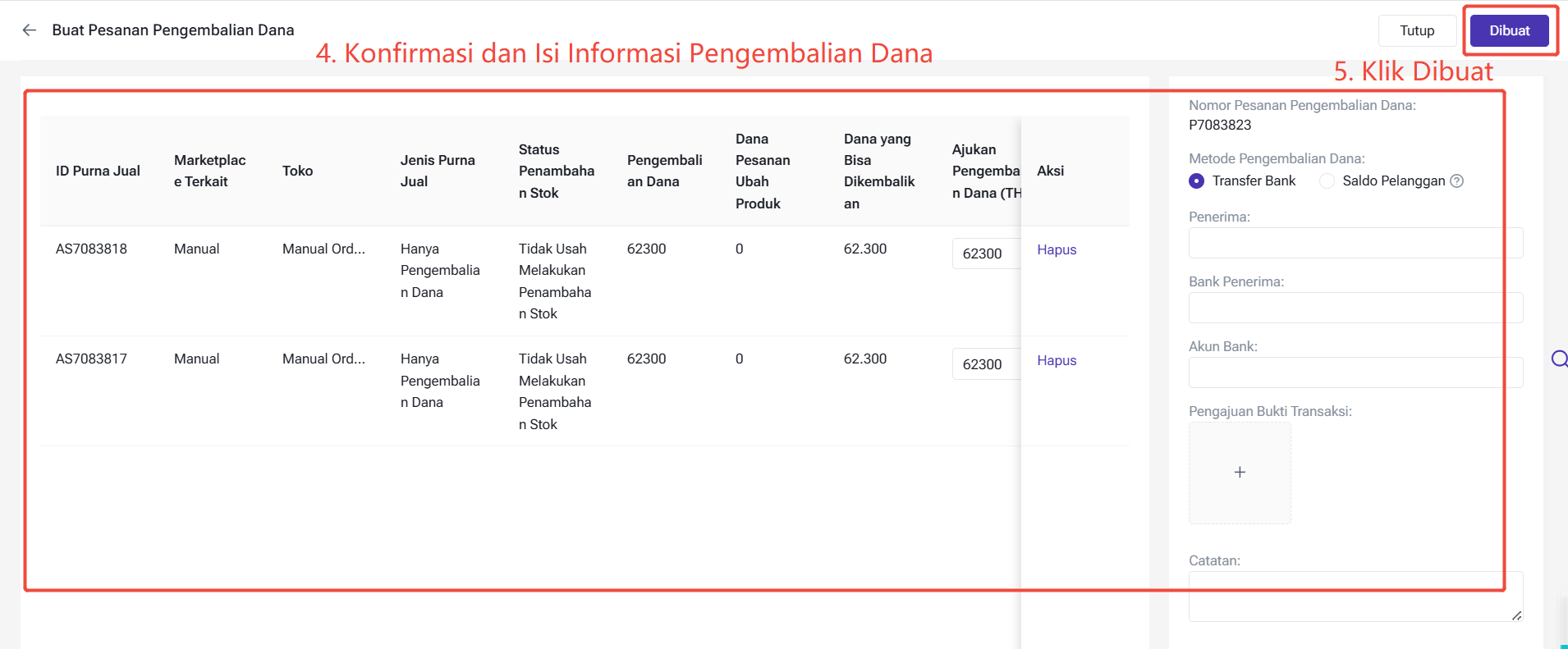 Langkah Keempat, Buat Pesanan Pengembalian Dana