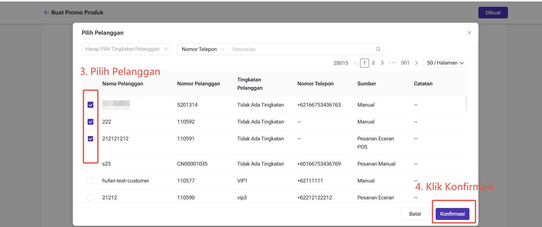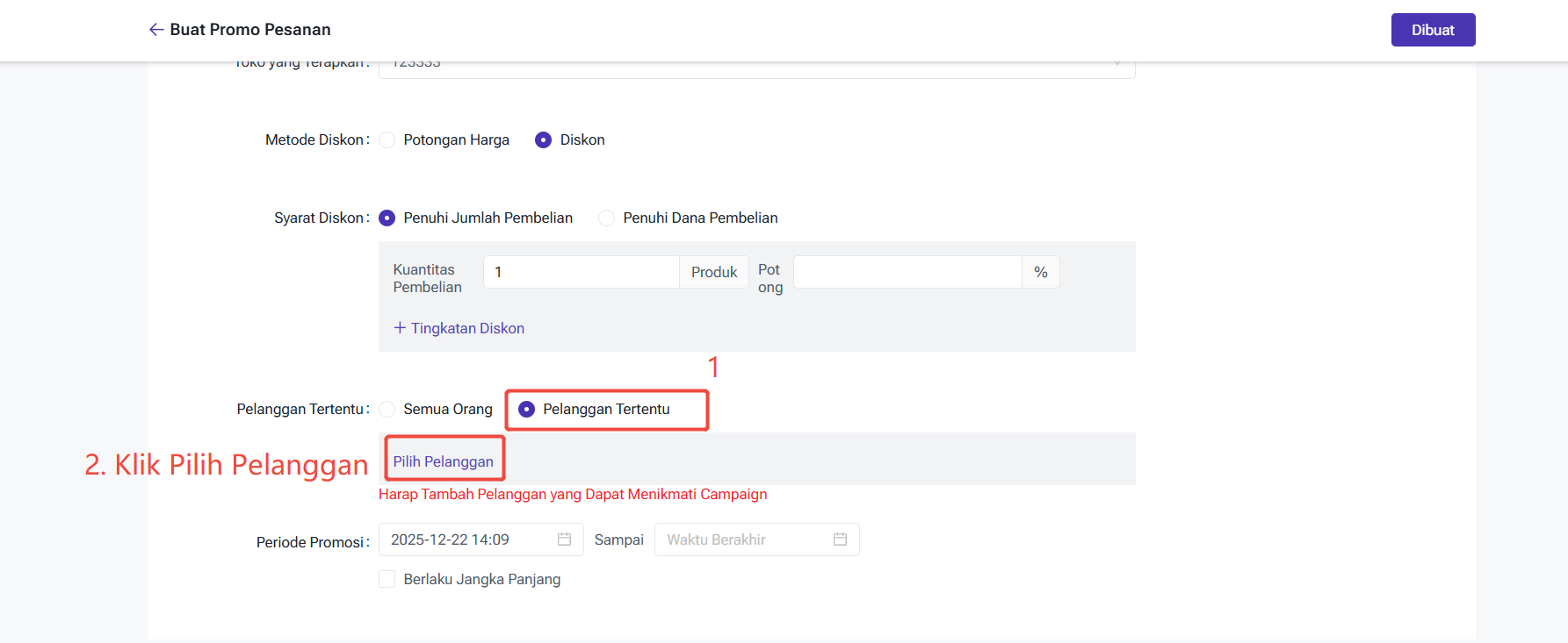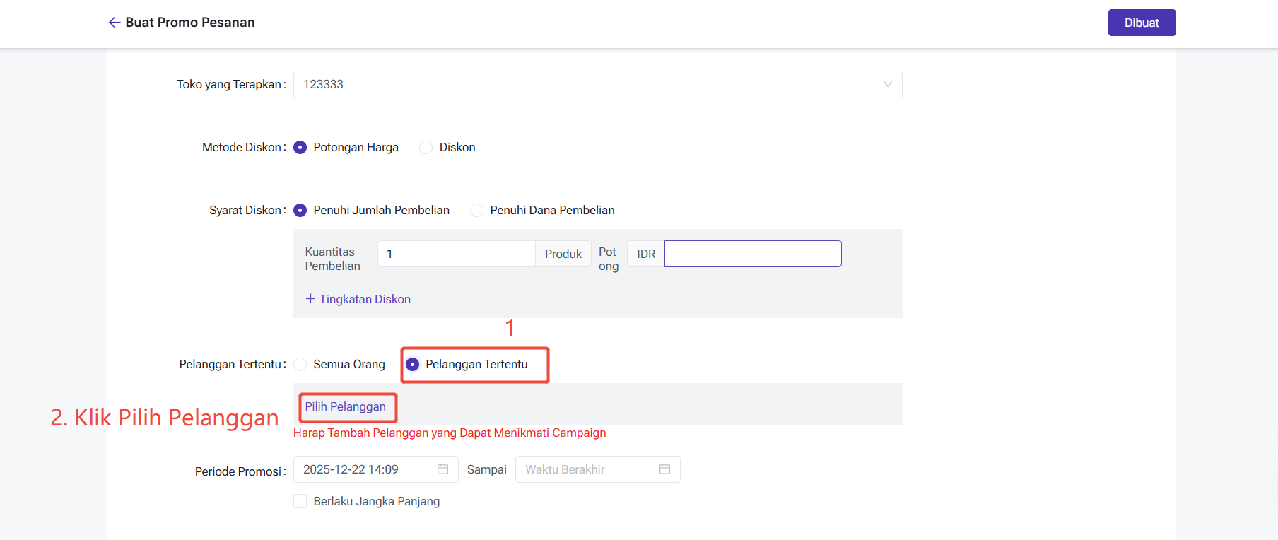 Jika memilih 【Pelanggan Tertentu】,Anda perlu menambahkan pelanggan yang diinginkan.
