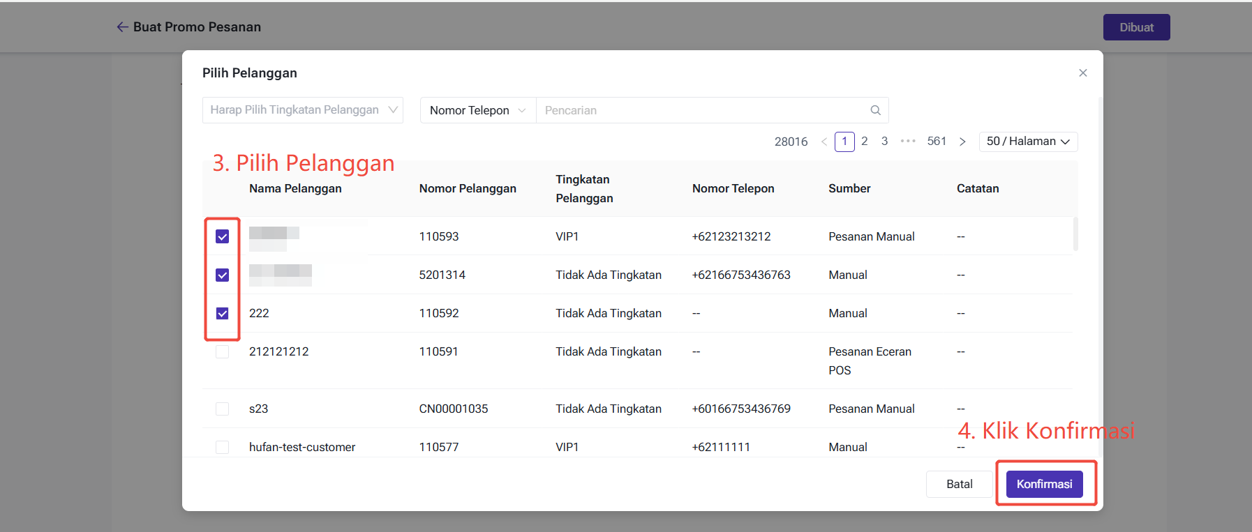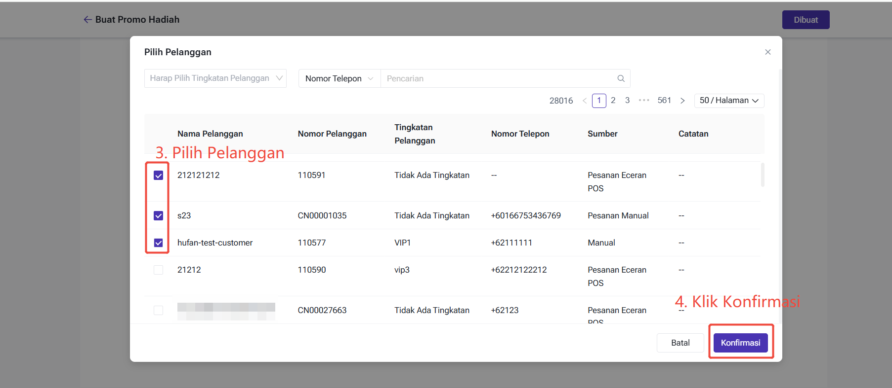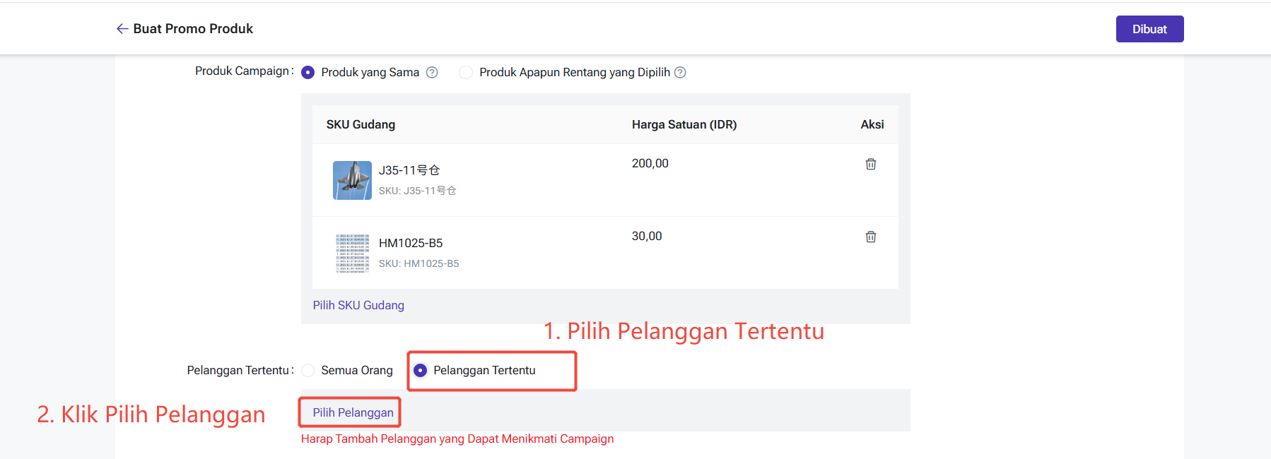 Jika memilih 【Pelanggan Tertentu】,Anda perlu menambahkan pelanggan yang diinginkan.