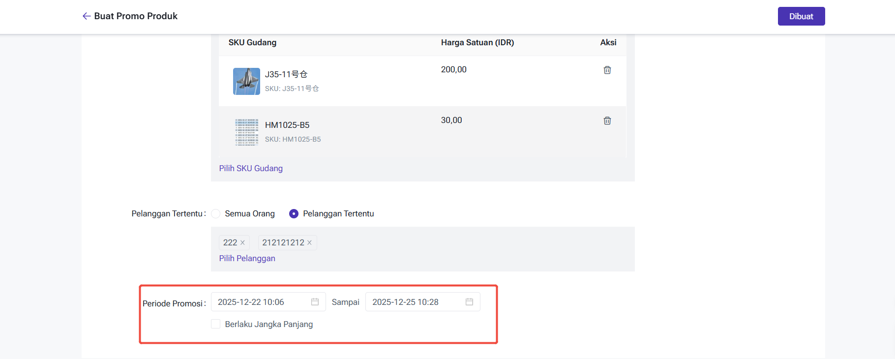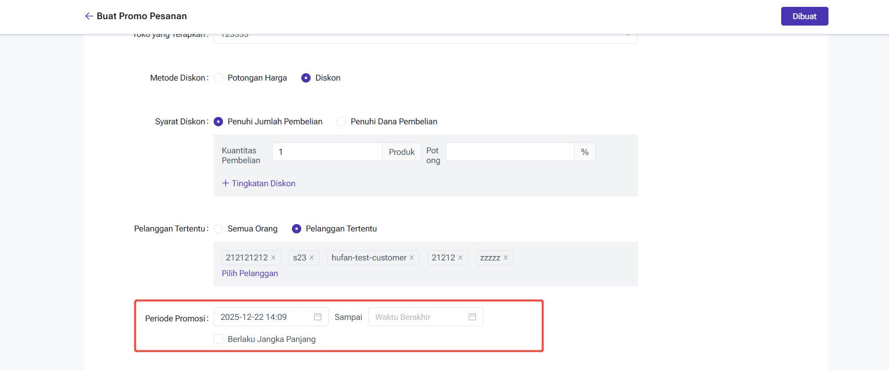 Jika ada kebutuhan,dapat centang opsi【Berlaku Jangka Panjang】Setelah cetang opsi【Berlaku Jangka Panjang】,hanya perlu memilih waktu promo mulai