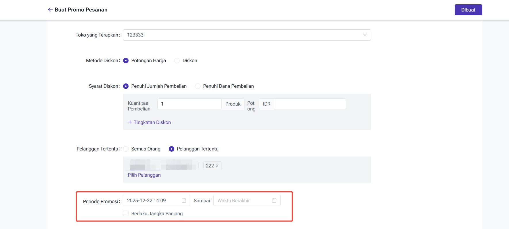 Jika ada kebutuhan,dapat centang opsi【Berlaku Jangka Panjang】。Setelah cetang opsi【Berlaku Jangka Panjang】,hanya perlu memilih waktu promo mulai