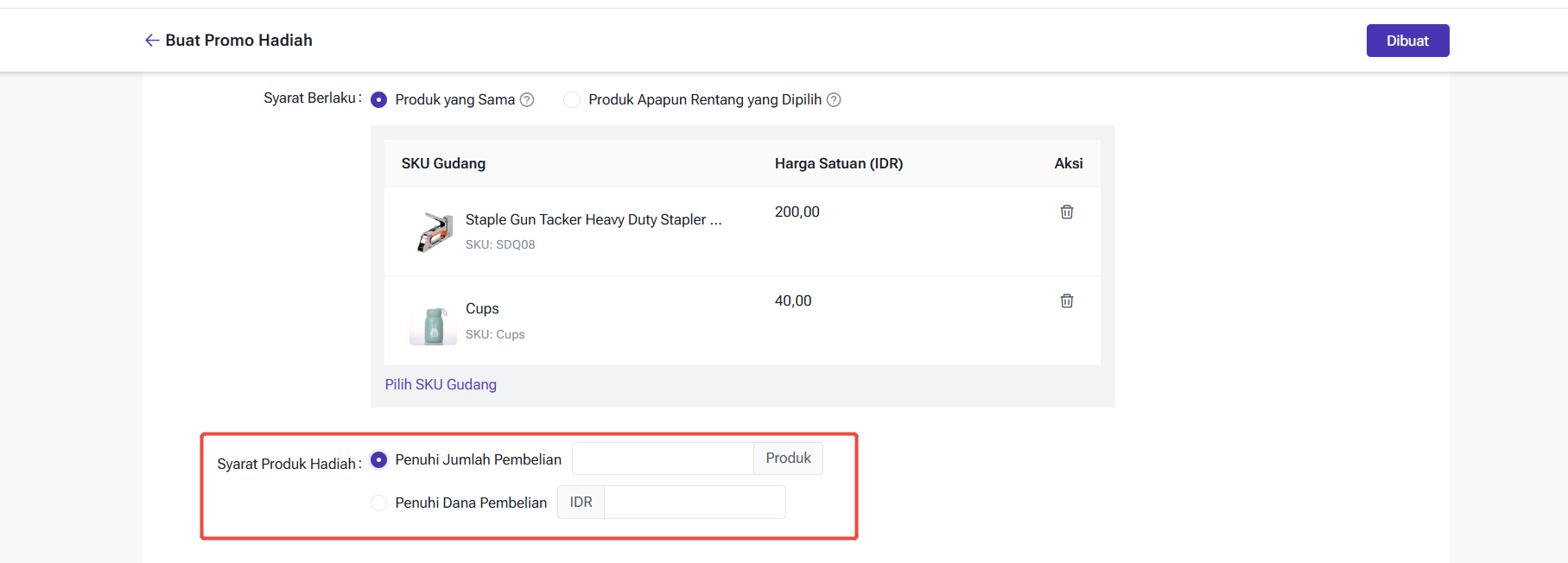 Memilih Syarat Produk Hadiah: Penuhi Jumlah Pembelian, Penuhi Dana Pembelian