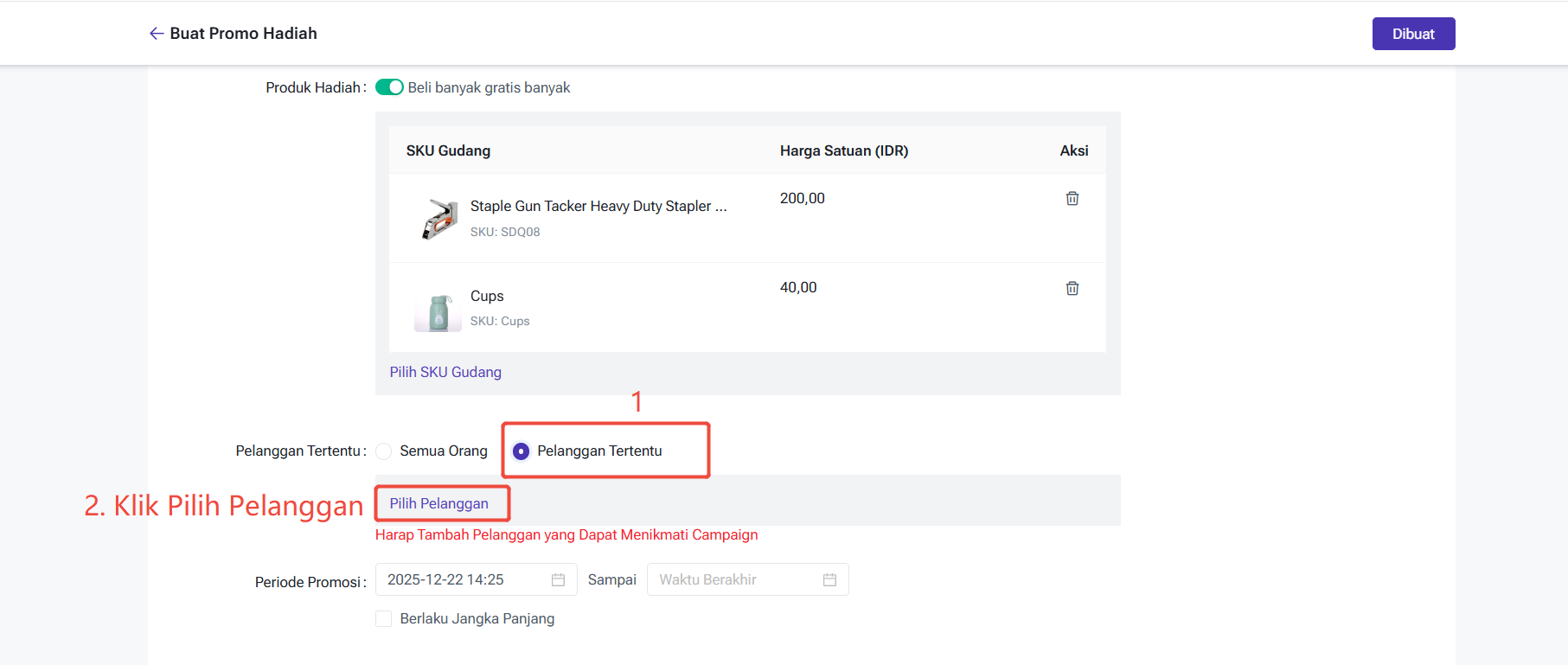 Maksimal dapat membuat 200 promo produk/pesanan/hadiah