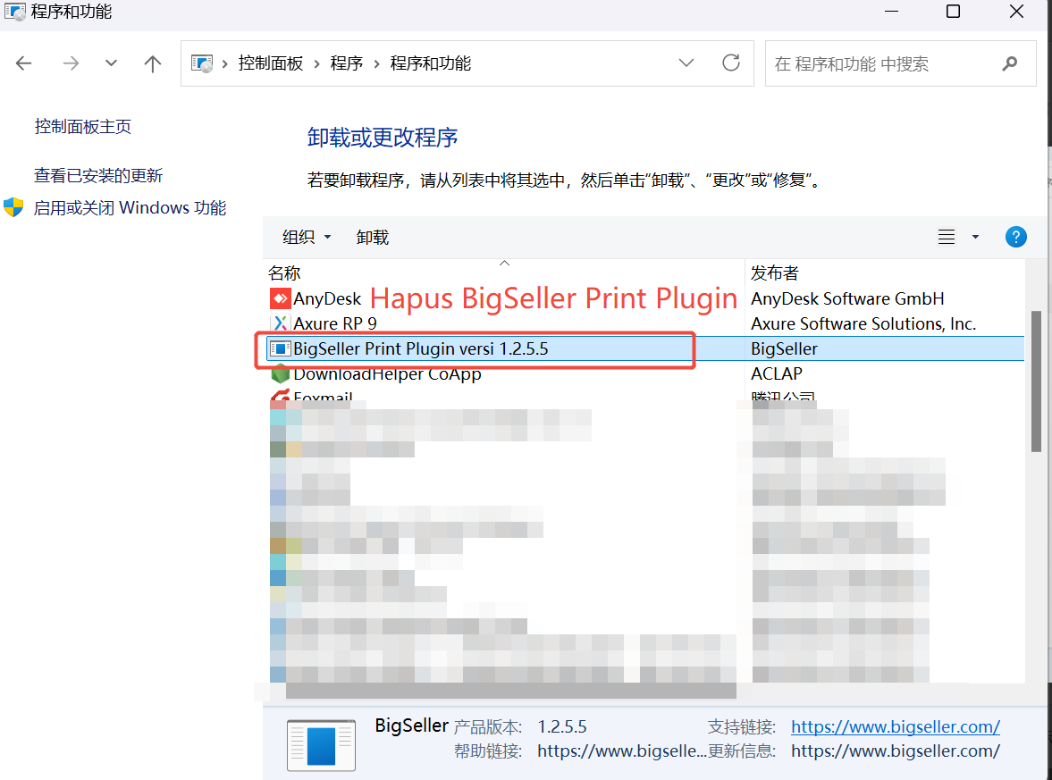 Buka Panel Kontrol → Program → Program dan Fitur → klik kanan dan pilih Uninstall BigSeller Print Plugin, kemudian lakukan instalasi ulang plugin.