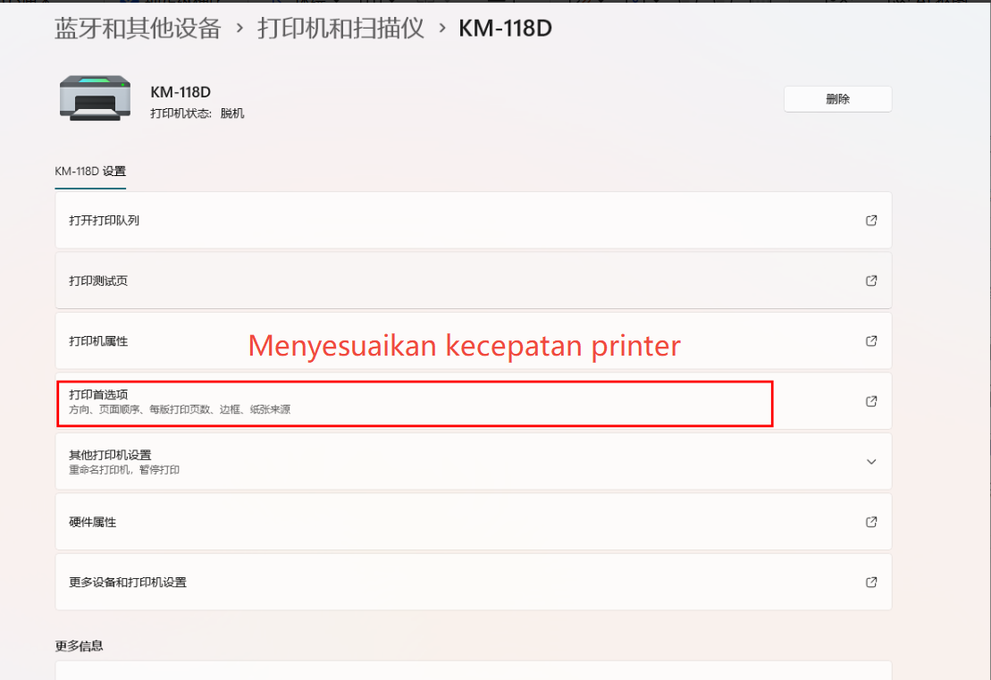 Buka Preferensi Printer → Konfigurasi Printer → Pengaturan Cetak, lalu tingkatkan kecepatan cetak.