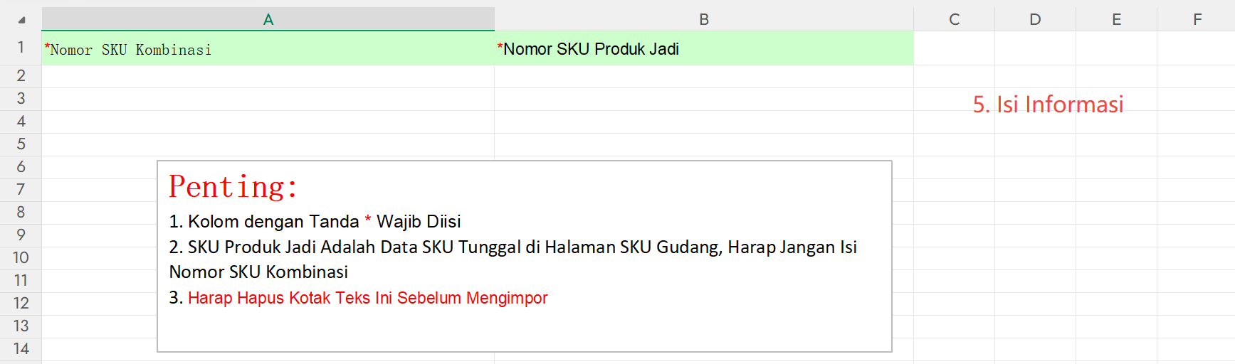 Wajib mengatur hubungan pemetaan antara SKU Kombinasi dan SKU produk jadi terlebih dahulu.