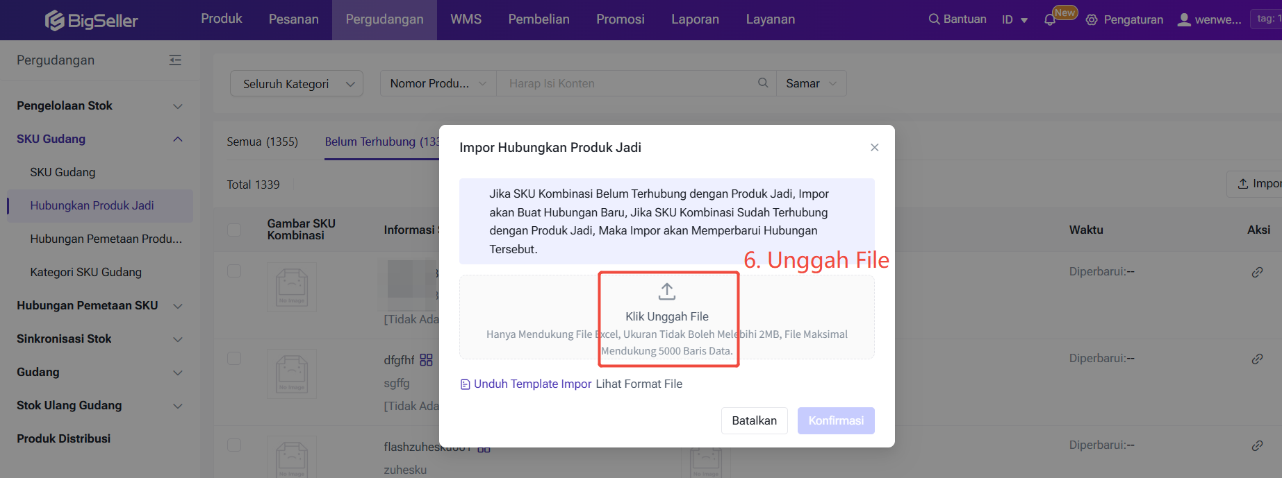 SKU produk jadi, SKU Kombinasi, dan SKU tunggal semuanya harus ditambahkan ke daftar gudang dan diatur lokasi raknya. Jika tidak, akan memengaruhi proses picking.