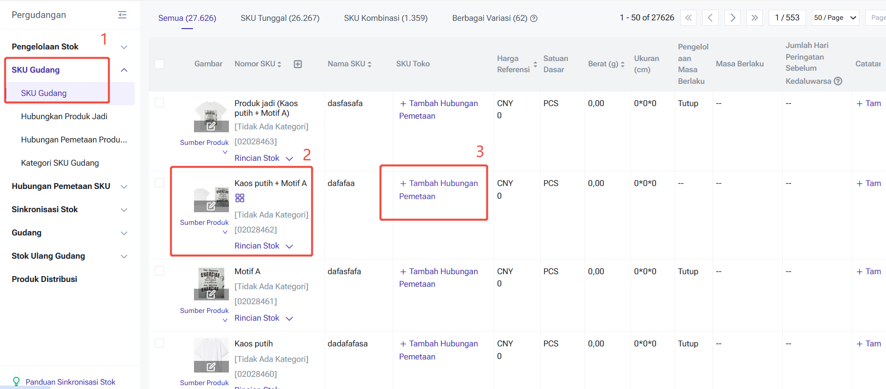 Setelah Hubungan Dibuat, Tidak Memengaruhi Jumlah Stok Pesanan yang Sudah Ada, Saat Sinkronisasi Stok, Stok SKU Kombinasi dan Produk Jadi Akan Otomatis Gabungkan dan Push.