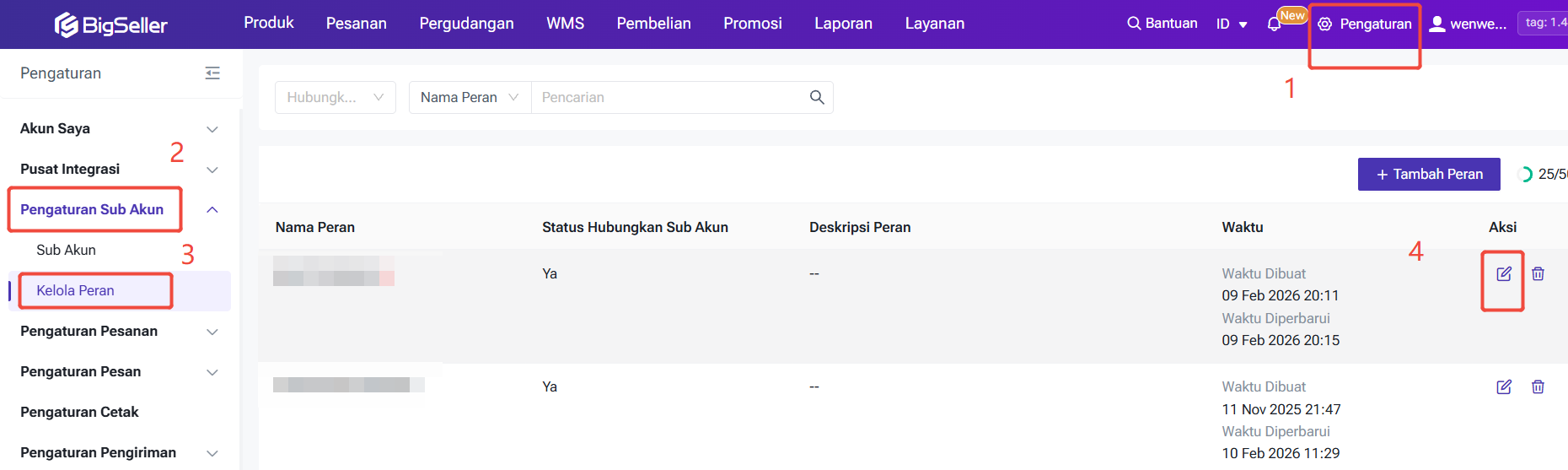 Langkah 1: Masuk ke Pengaturan > Pengaturan Sub-Akun > Peran > Edit
