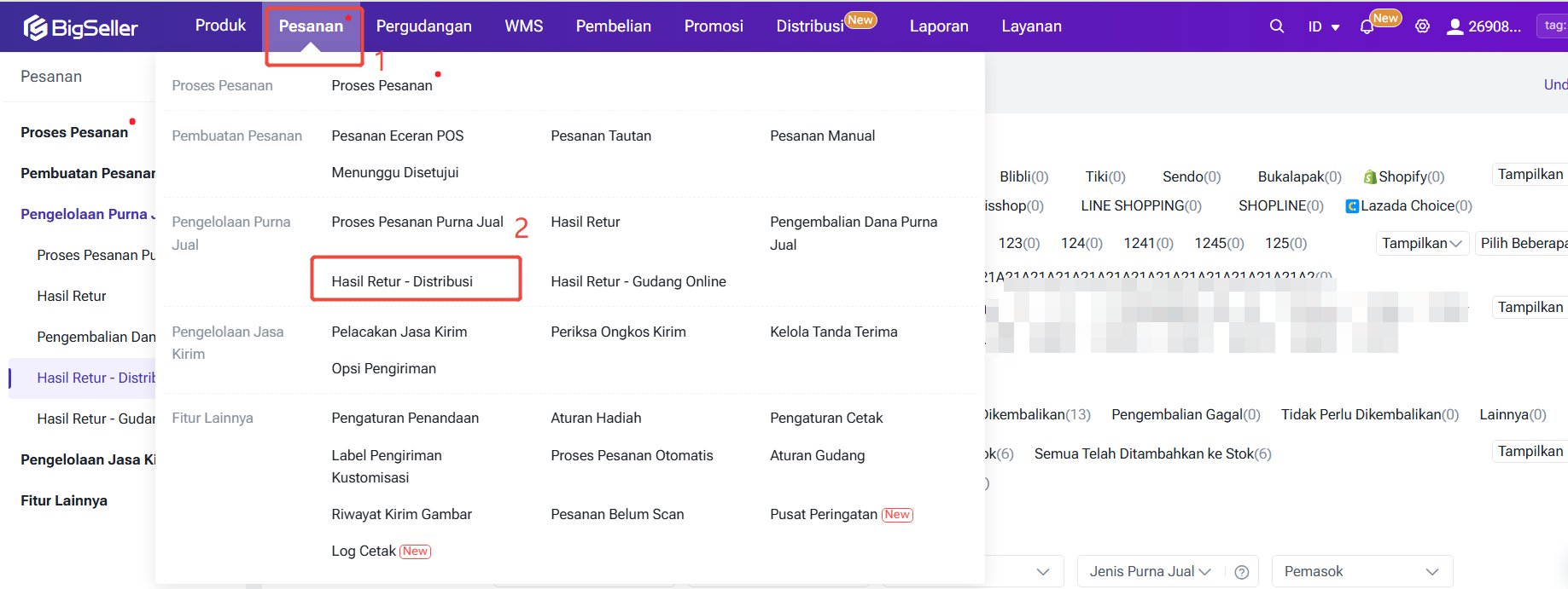 Untuk Distributor, Anda perlu masuk ke Modul Pesanan > Hasil Retur - Distribusi dan pilih dan push pesanan pengembalian yang diinginkan kepada pemasok Anda.